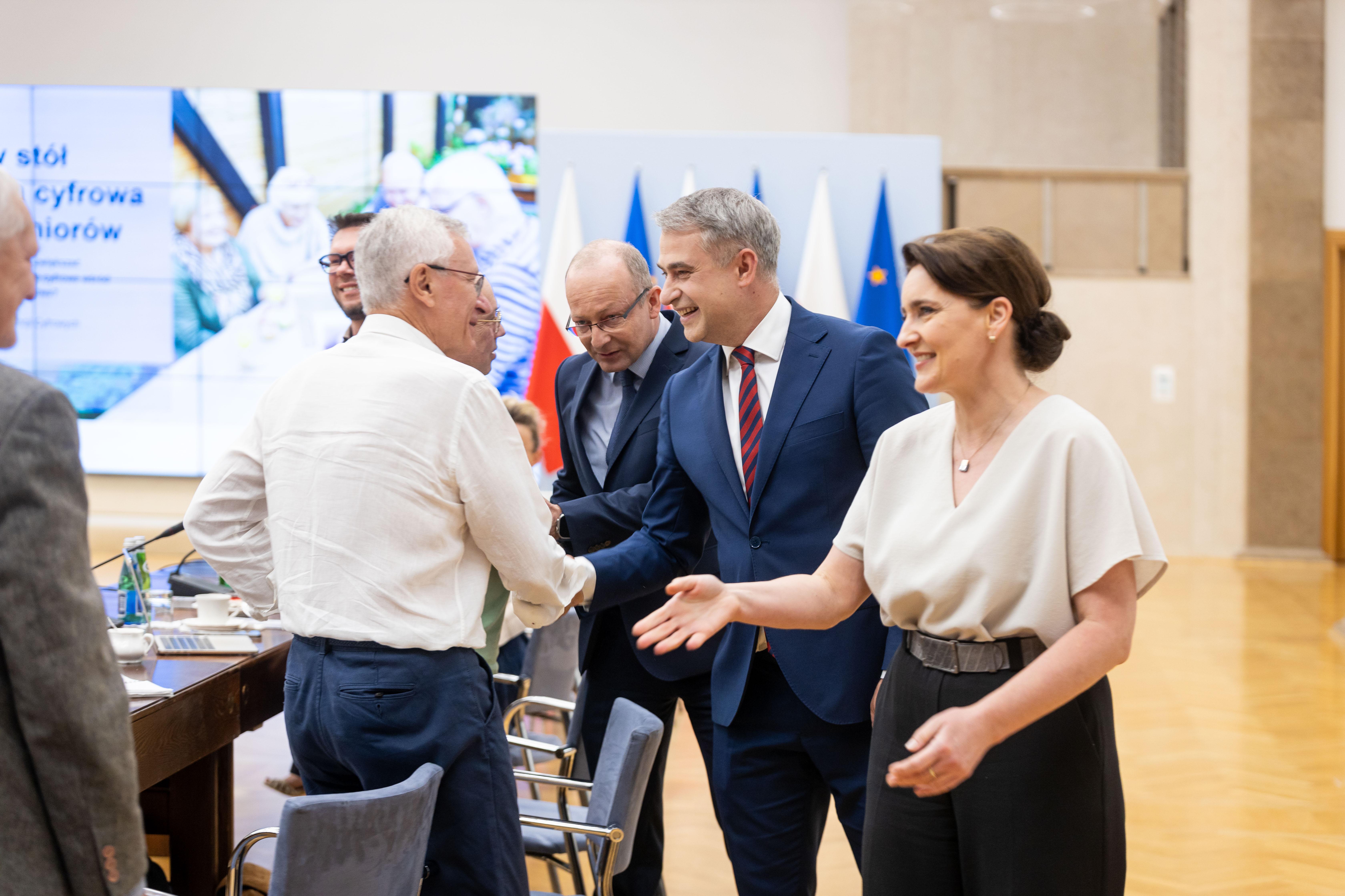 W Kancelarii Prezesa Rady Ministrów odbył się okrągły stół, na którym przedstawiciele różnych organizacji i instytucji omawiali wyzwania, potrzeby i problemy seniorów związane z korzystaniem z nowych technologii. W spotkaniu uczestniczyli m.in. wicepremier i minister cyfryzacji Krzysztof Gawkowski, minister ds. polityki senioralnej Marzena Okła-Drewnowicz oraz wiceminister cyfryzacji Paweł Olszewski. Głównym celem spotkania było zwiększenie udziału seniorów w cyfrowym świecie w sposób bezpieczny i satysfakcjonujący.
