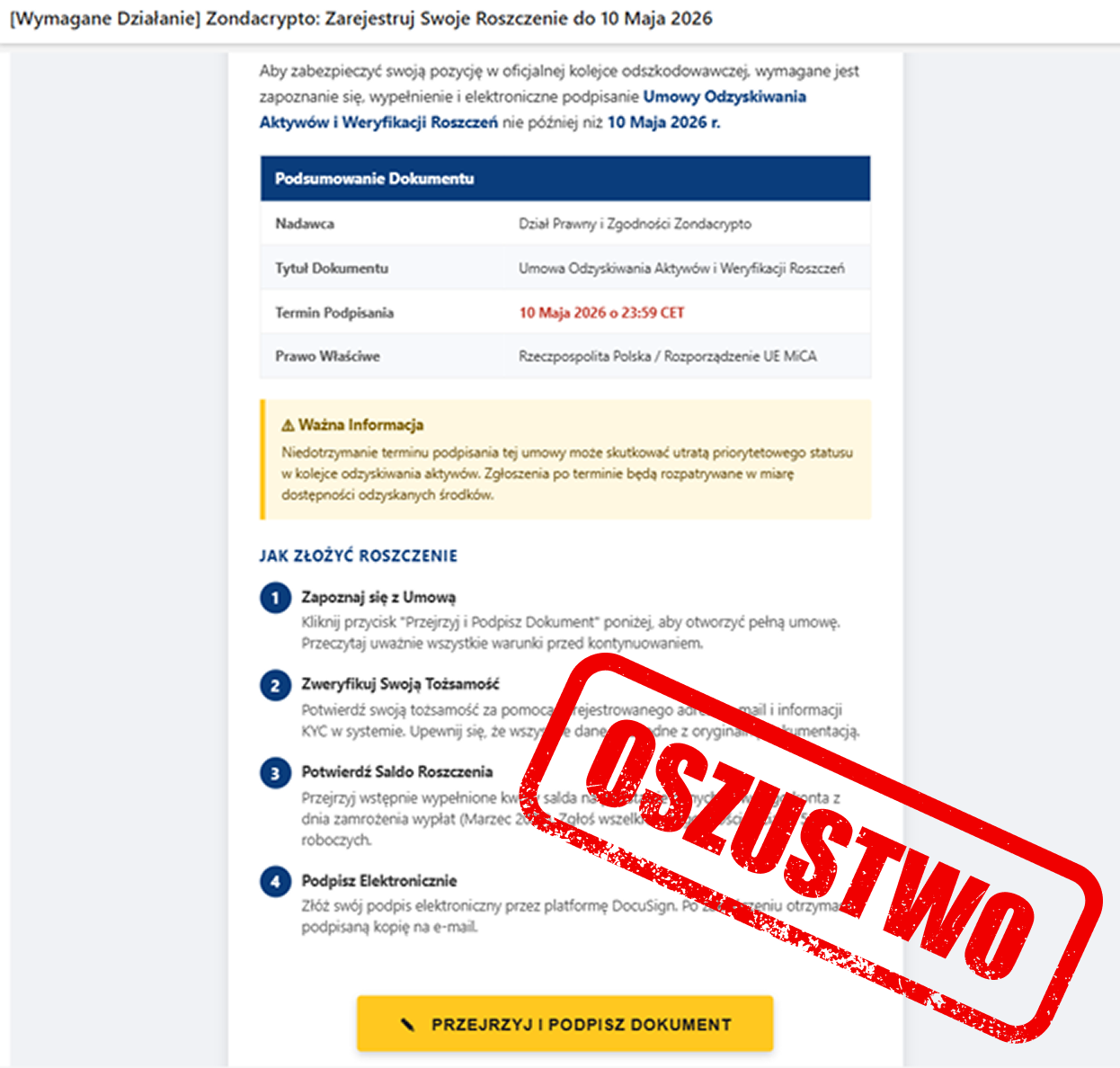 Niebezpieczny adres mail: recovery[@]zondanewsletter[.]pl |