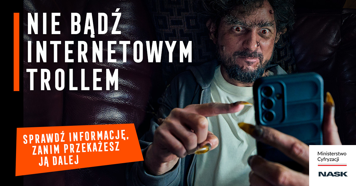 Startuje kolejna odsłona ogólnopolskiej kampanii społecznej realizowanej przez Ministerstwo Cyfryzacji oraz NASK. Jej celem jest edukacja społeczeństwa w zakresie dezinformacji, manipulacji w sieci oraz zagrożeń, jakie niosą ze sobą niezweryfikowane treści. Podobnie jak w 2024 r. koncepcja kampanii nawiązuje do wizerunku trolli.