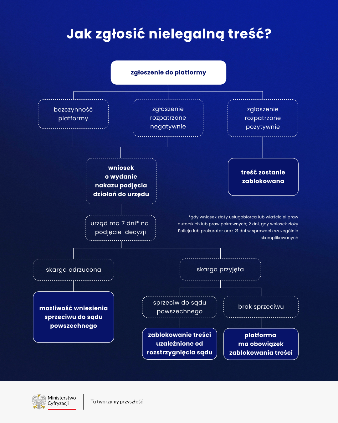 Najpierw jednak trzeba wykorzystać dostępny na platformie mechanizm zgłaszania nielegalnych treści. Złożenie wniosku będzie możliwe dopiero wtedy, jeśli nie będzie satysfakcjonującej reakcji ze strony platformy.