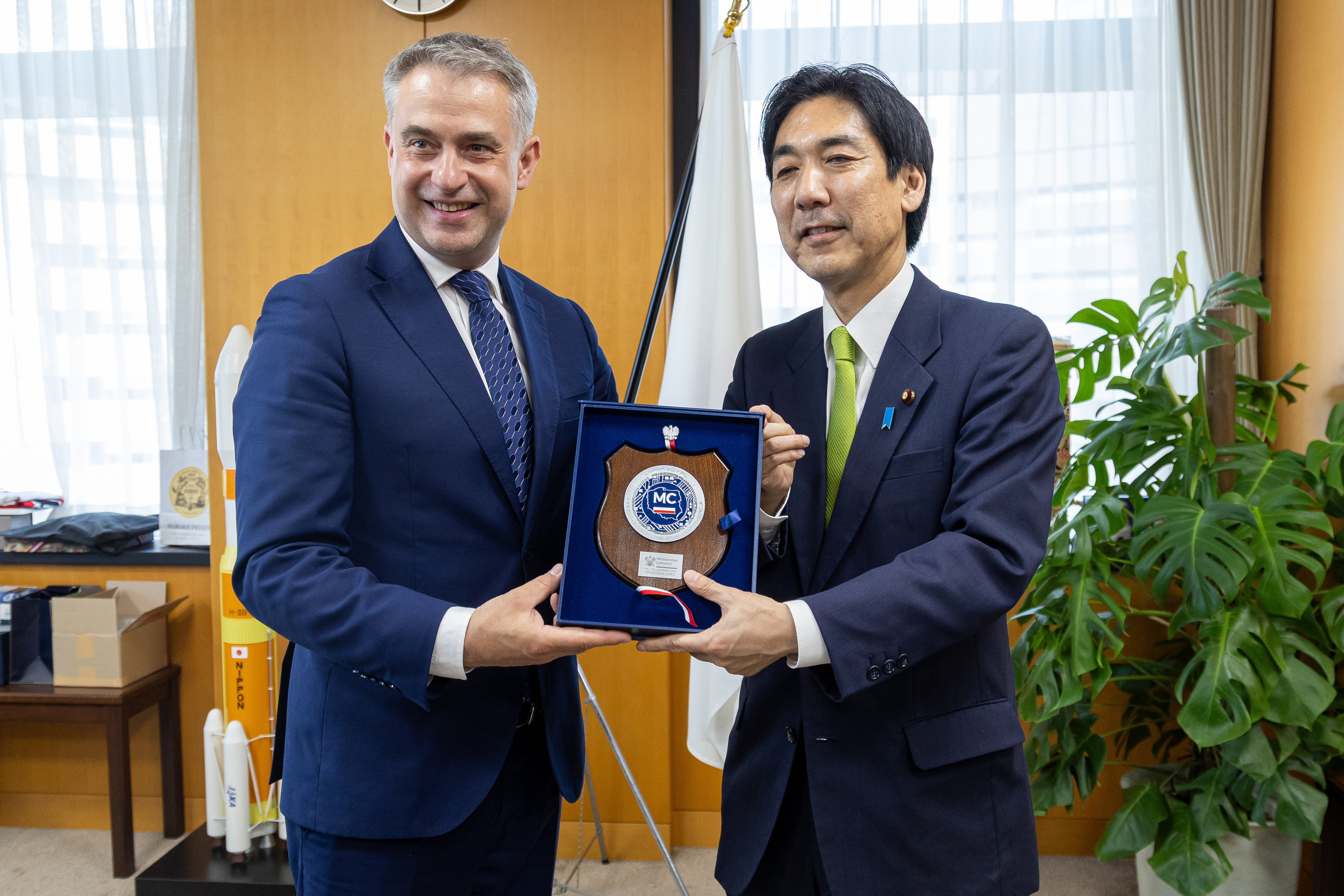 Polska delegacja spotkała się z Panem Minoru Kiuchi, ministrem ds. bezpieczeństwa gospodarczego, który odpowiada za naukę i technologię oraz sztuczną inteligencję. Rozmawiano o zacieśnieniu roboczej współpracy i wymiany doświadczeń w zakresie technologii przełomowych, a także w cyberbezpieczeństwie. Strona polska zaproponowała swoim partnerom podpisanie memorandum o współpracy w cyberbezpieczeństwie w zakresie analogicznym do tego, jakie w ubiegłym roku Polska zawarła z USA. Strona japońska doceniając osiągnięcia Polski w budowie cyberodporności wyraziła duże zainteresowanie szczególnie bezpieczeństwem infrastruktury energetycznej.