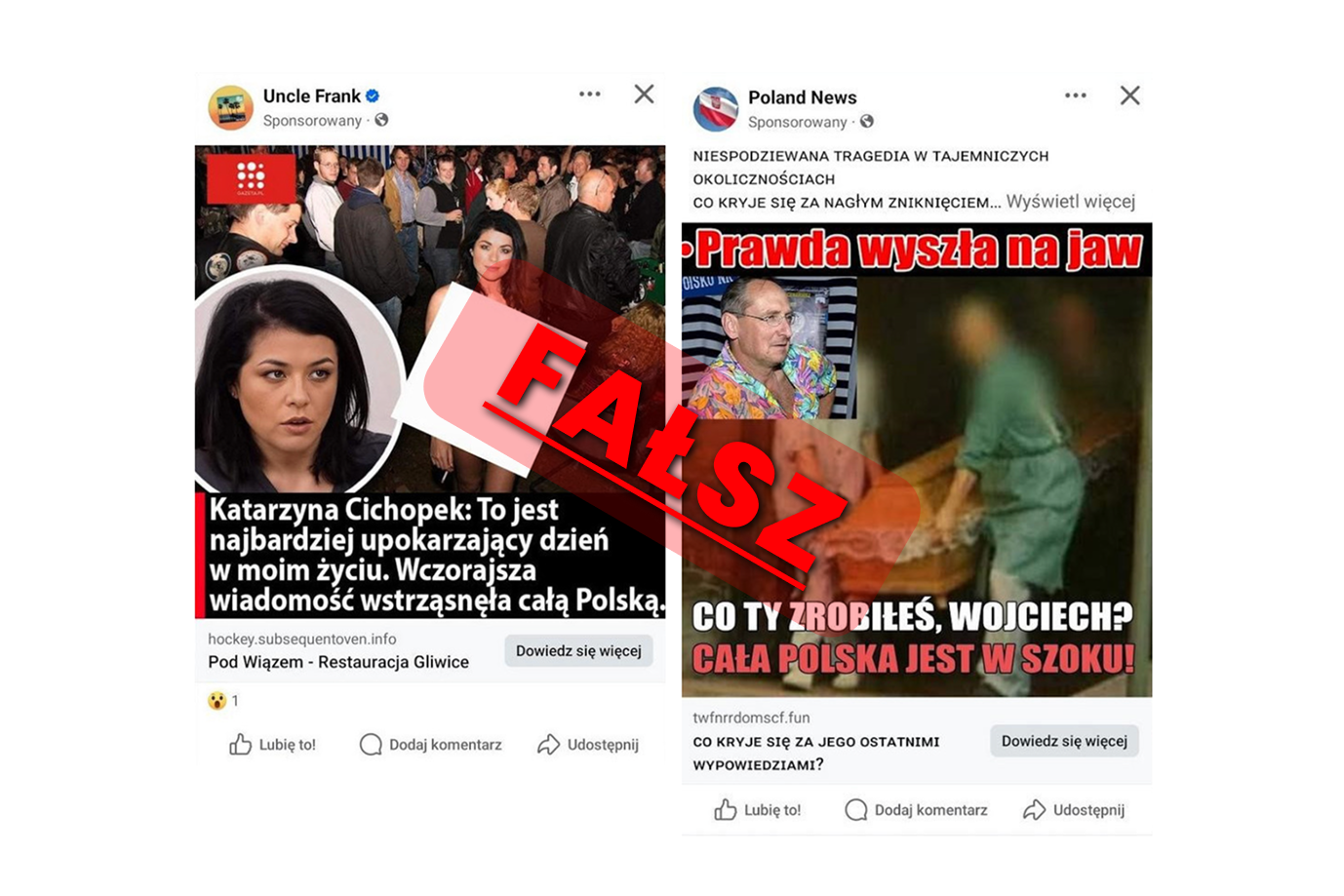 Zobacz przykłady treści dezinformacyjnych w galerii poniżej.