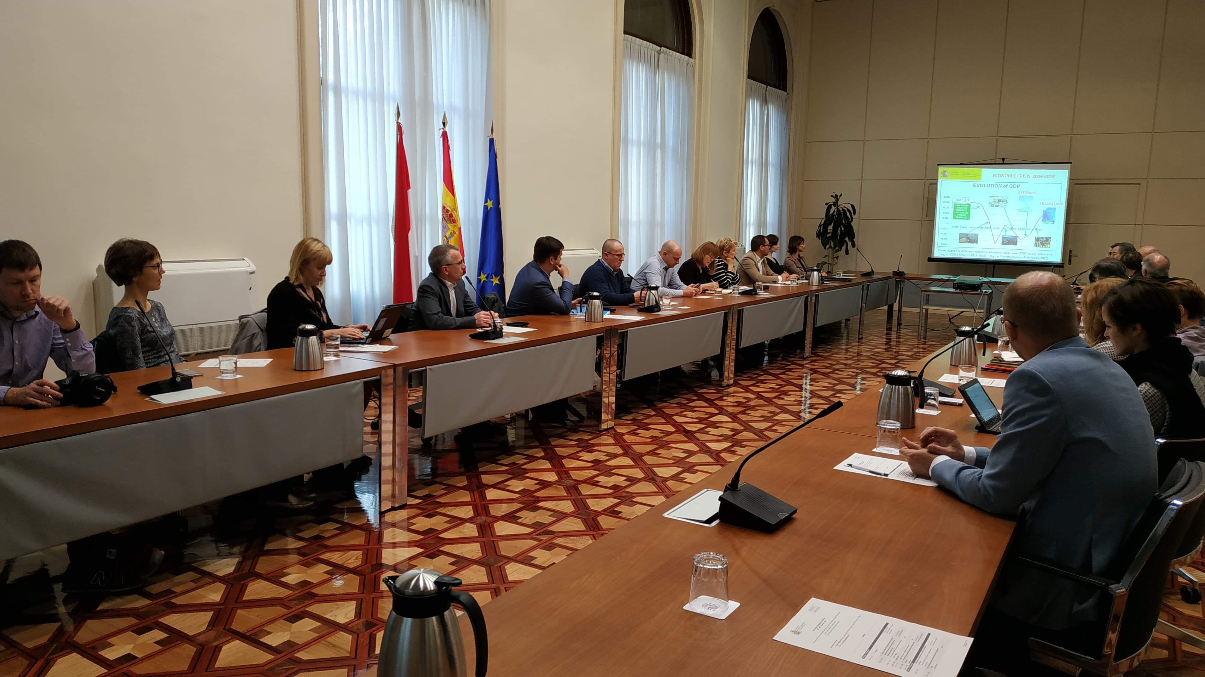 Pełnomocnicy ds. otwartości danych z 13 ministerstw, KPRM i GUS spotkali się z przedstawicielami Ministerstwa Polityki Terytorialnej i Funkcji Publicznej, Ministerstwa Gospodarki i Przedsiębiorczości oraz Sekretariatu Generalnego ds. Administracji Cyfrowej Hiszpanii. Delegacji przewodniczyła Agata Miazga, pełnomocnik ministra cyfryzacji ds. otwartości danych. Dwudniowe spotkania warsztatowe (15 i 16 listopada) otworzył Fernando de Pablo, sekretarz generalny ds. administracji cyfrowej.