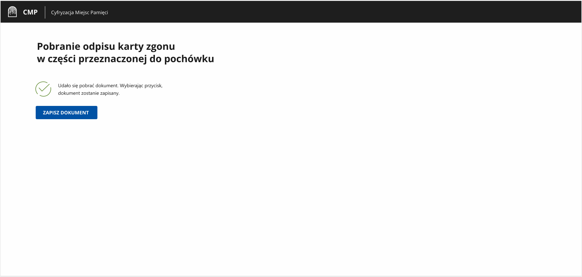 Odpis będzie można przekazać do zakładu pogrzebowego, który będzie zajmował się pochówkiem, do krematorium lub właściciela cmentarza, na którym ma się odbyć pochówek. Będzie można go przekazać w wersji papierowej (po wydrukowaniu) lub w formie elektronicznej.