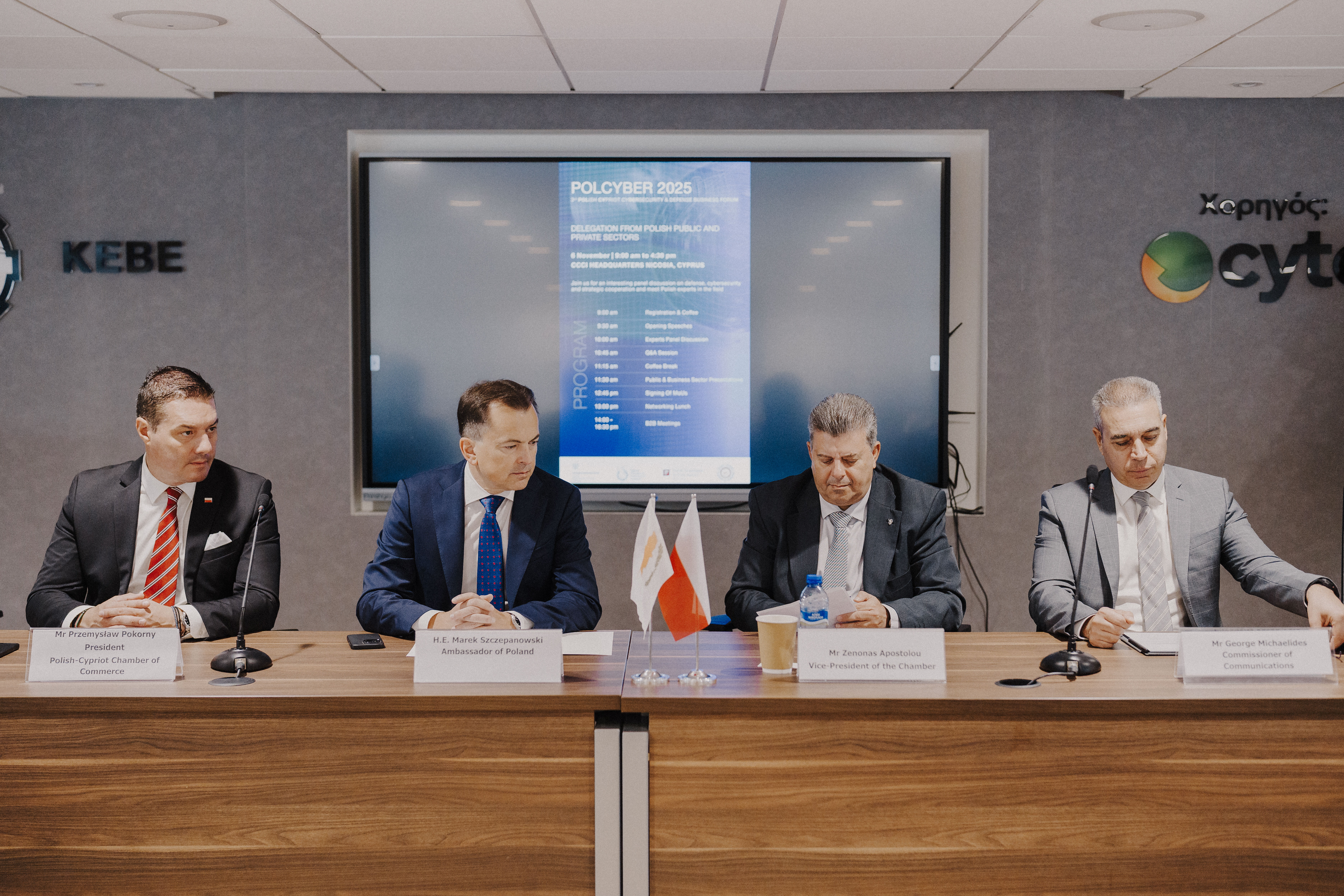 Wydarzenie otworzyli: Ambasador RP, Marek Szczepanowski oraz Komisarz ds. Komunikacji CY, George Michaelides. Następnie odbył się panel dyskusyjny poświęcony tematyce obronności, cyberbezpieczeństwa i współpracy strategicznej z udziałem przedstawicieli polskich i cypryjskich instytucji państwowych, środowisk naukowych oraz biznesu, pt. „Obrona, cyberbezpieczeństwo i współpraca strategiczna”.