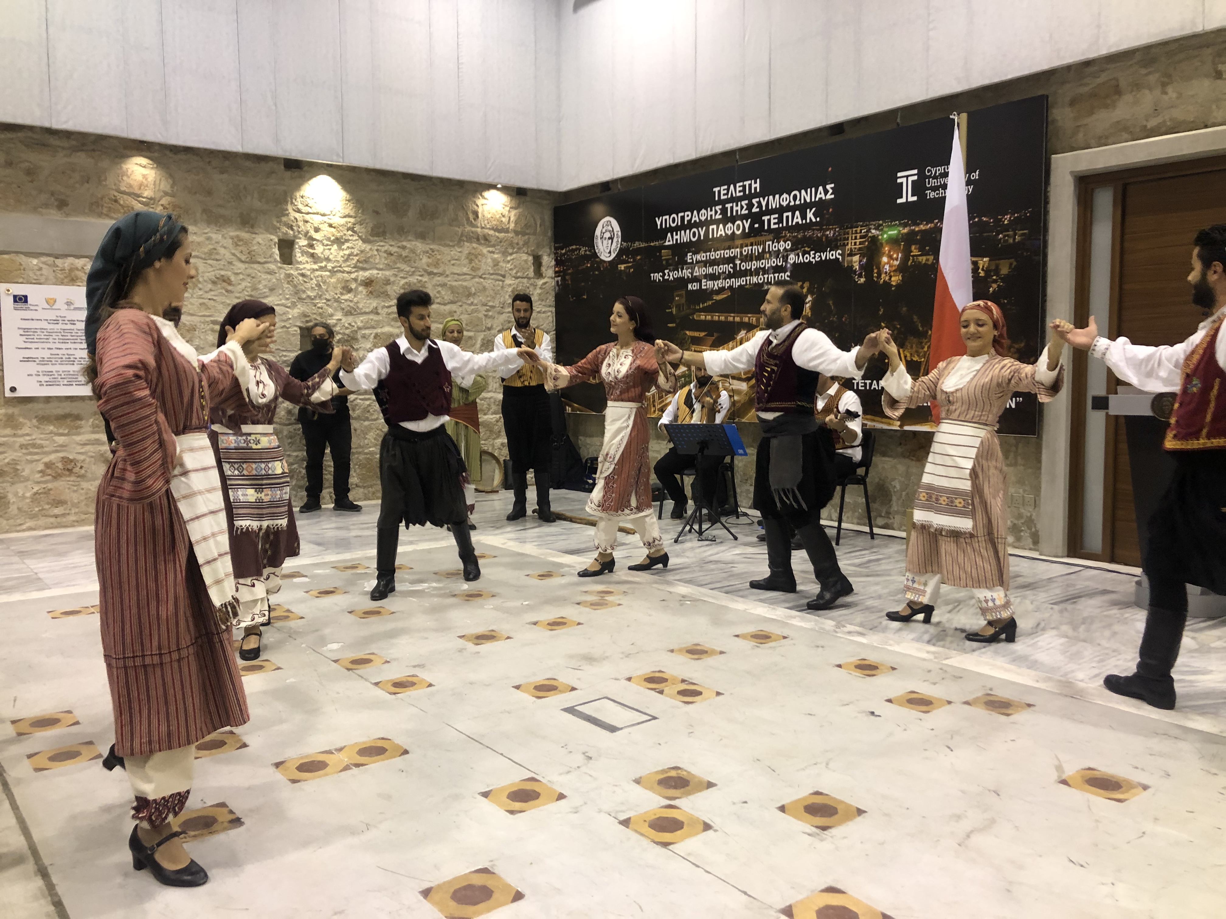 Pierwszym punktem programu było wspólne odśpiewanie „Mazurka Dąbrowskiego” w ramach akcji „Niepodległa do Hymnu”. Po części oficjalnej gościom zaprezentowany został program artystyczny - mieszkający na Cyprze polski muzyk Zbigniew Irzeński wykonał na akordeonie utwory patriotyczne, a lokalny zespół folkowy „Ktima” tradycyjne tańce cypryjskie. Zgromadzeni goście mogli także zapoznać się z wystawą „Ojcowie Niepodległości”, przygotowaną przez Instytut Pamięci Narodowej. Ważnym akcentem uroczystości było również wręczenie burmistrzowi Pafos Phedonowi Phedonosowi Odznaki Honorowej „Bene Merito” w uznaniu jego zasług dla rozwoju stosunków polsko-cypryjskich. W imieniu Ministra Spraw Zagranicznych dekoracji dokonała Ambasador RP w Republice Cypryjskiej Irena Lichnerowicz-Augustyn.