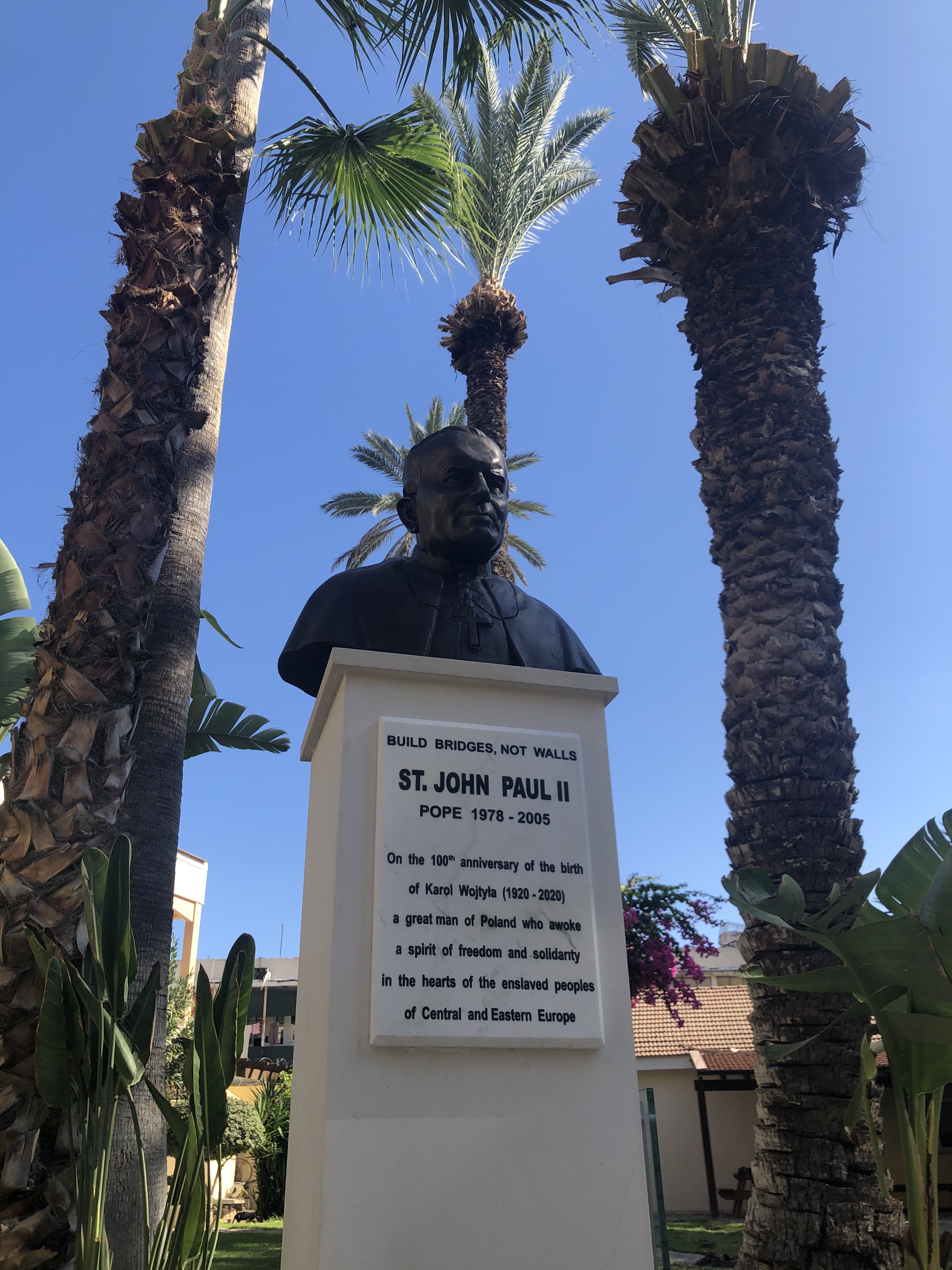 On 16th October 2020, the anniversary day of the election of Karol Wojtyła to the Pope, a bust of Saint John Paul II was unveiled in the garden of the Apostolic Nunciature in Nicosia.