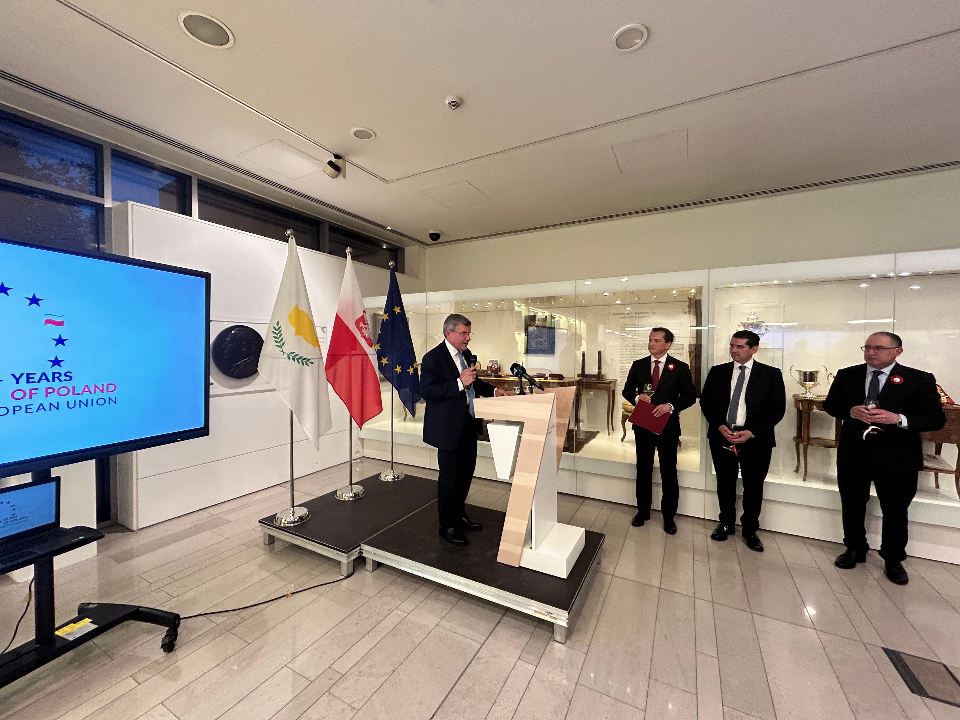 The Embassy of the Republic of Poland in Nicosia, together with the Honorary Consul General Leandros Papaphilippou, organized a special reception on the occasion of the 233. Anniversary of the Constitution of May 3. The event, which took place in the prestigious Leventis Foundation Gallery, was also part of a series of celebrations of the 20th anniversary of Poland's membership in the European Union.