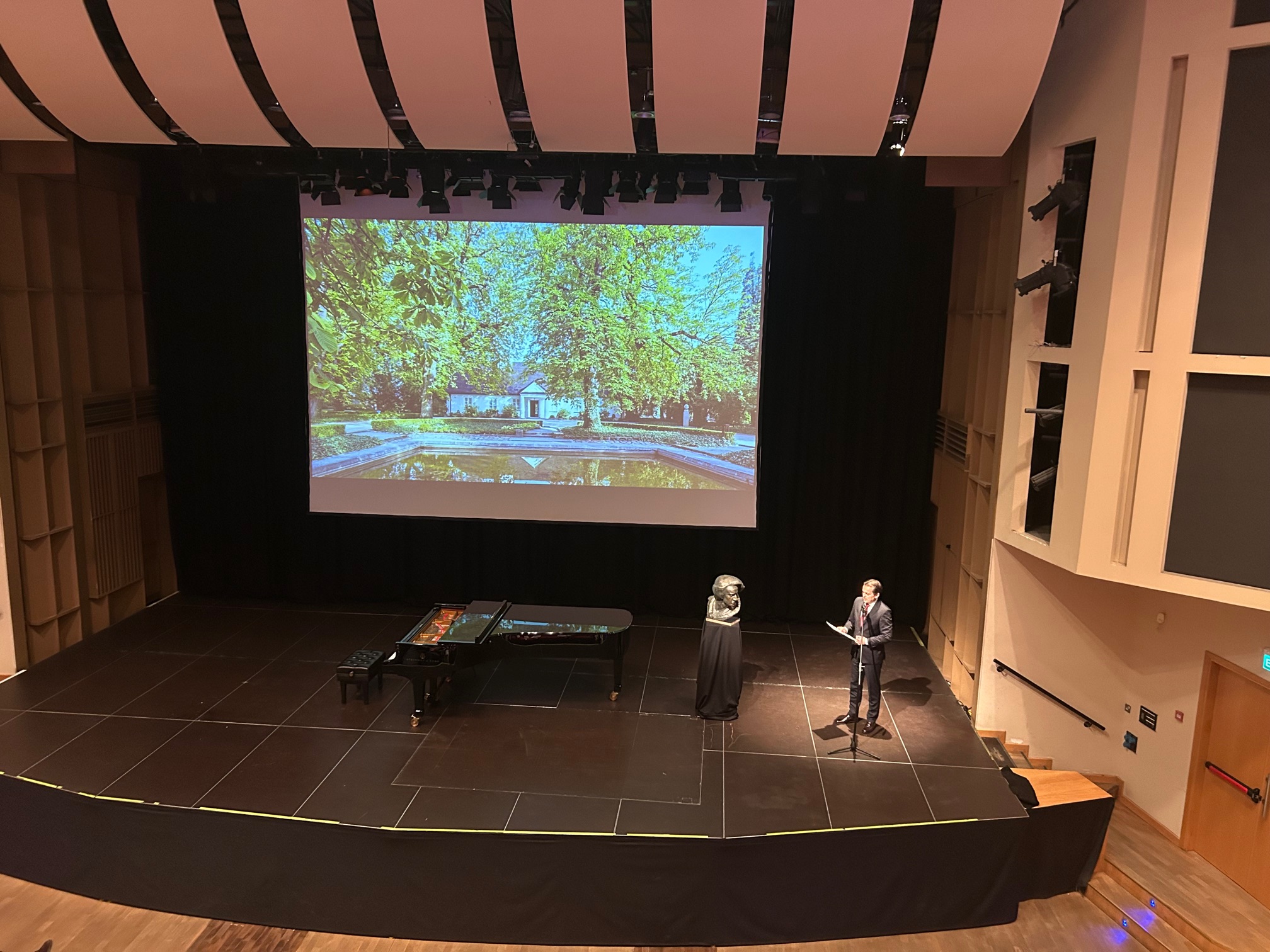 In his welcome address, the Ambassador introduced the guests to the atmosphere of piano recitals, presenting the life and work of F. Chopin as well as the historical context. The audience then watched a film produced by the Fryderyk Chopin Institute entitled “A Guided Tour of the Fryderyk Chopin Museum in Warsaw.” The evening was devoted to the music of F. Chopin, performed excellently by the young and talented pianist, a participant in the 19th International Chopin Piano Competition, Krzysztof Wierciński. His virtuosity and interpretations were met with admiration from the guests. A particularly special moment was the symbolic celebration of the composer’s birthday, marked by the appearance of a birthday cake on stage.