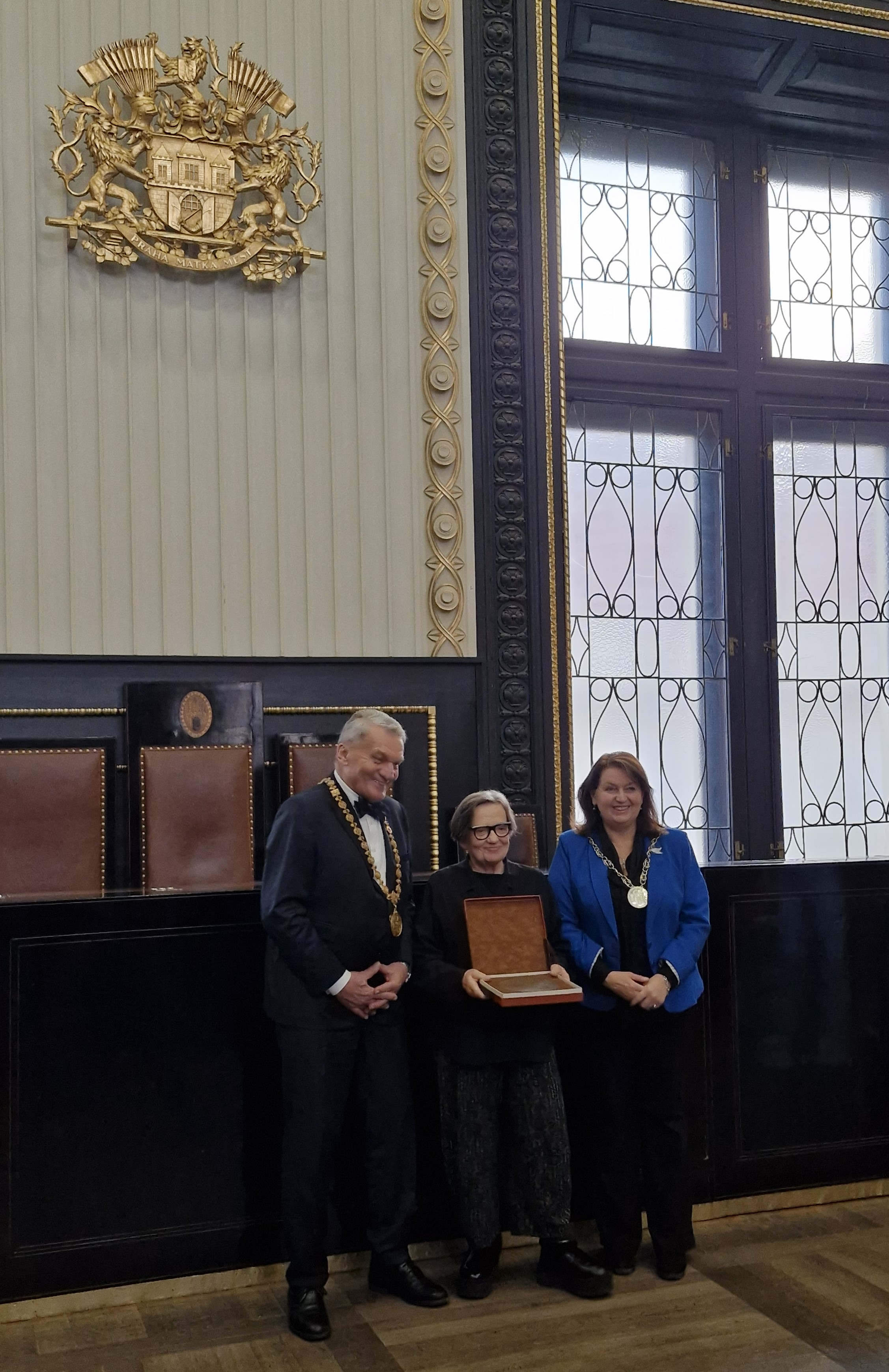 Pełna relacja z uroczystości na: https://praha.eu/web/praha/w/primator-hl-m-prahy-a-rektorka-univerzity-karlovy-predali-prestizni-cenu-karla-iv-polske-reziserce-a-scenaristce-agnieszce-holland