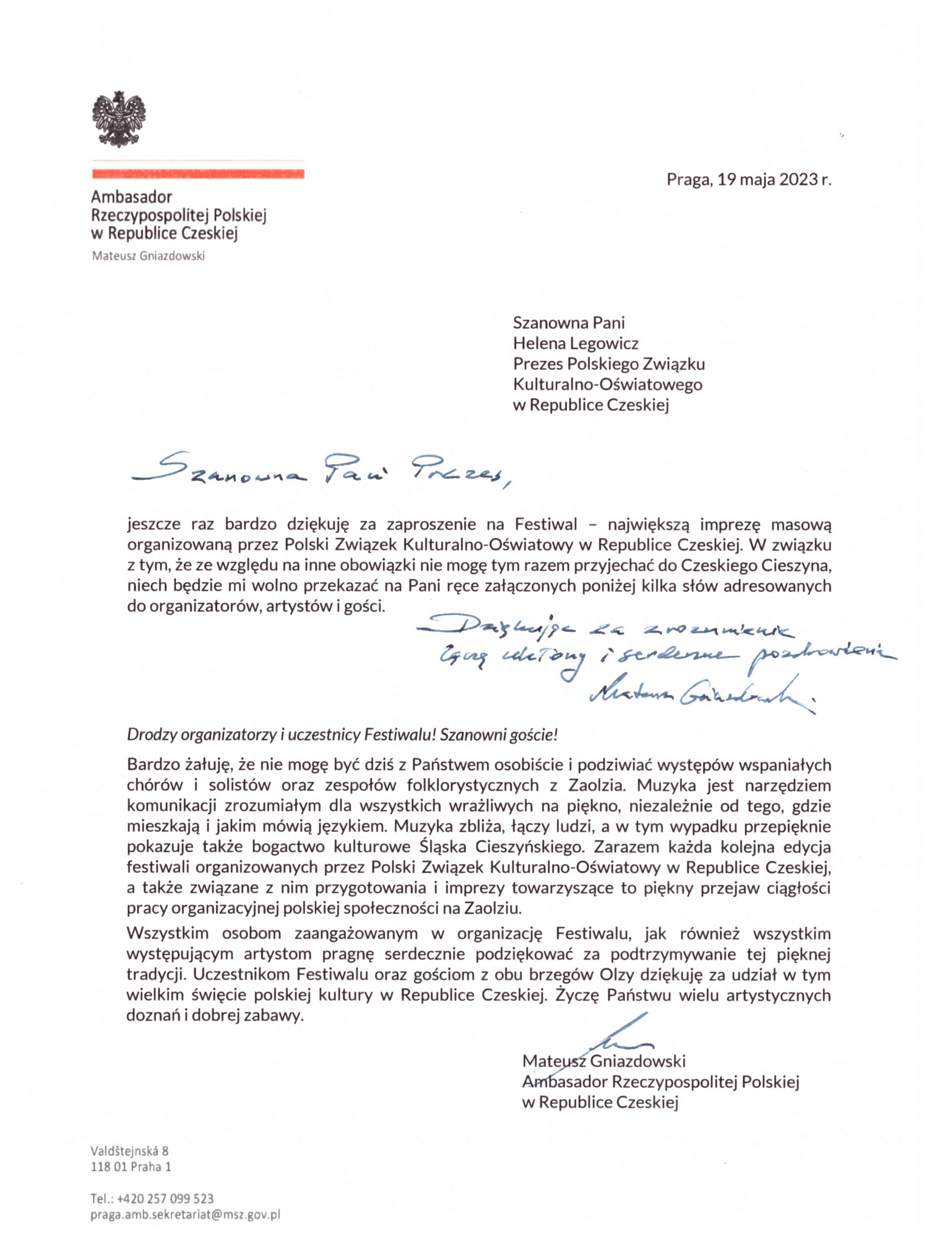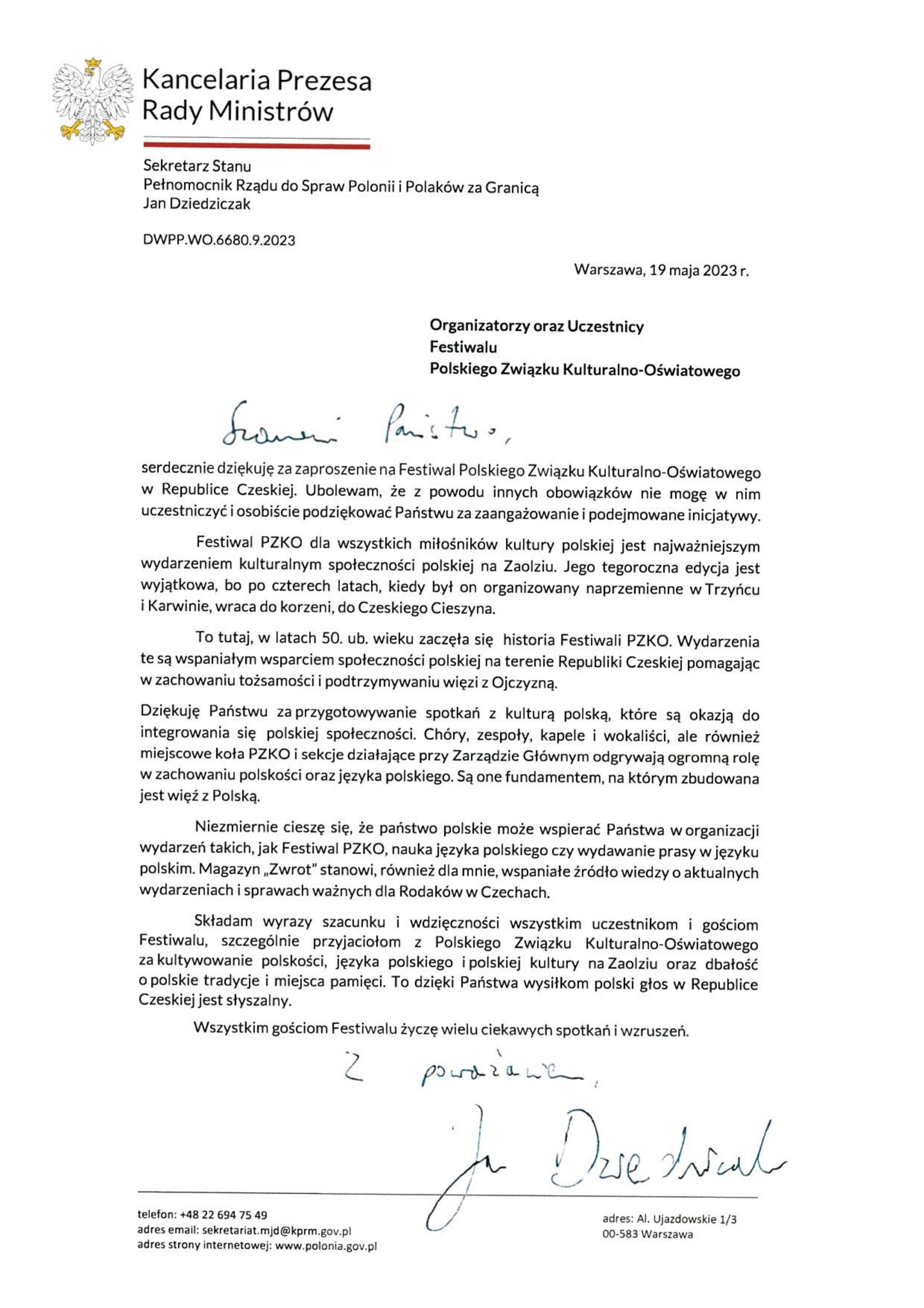 Wydarzenie organizowane jest co cztery lata a tegoroczna edycja została objęta honorowym patronatem miasta Czeski Cieszyn i Konsul Generalnej RP w Ostrawie Izabelli Wołłejko-Chwastowicz. Festiwal odwiedziło ponad dwa i pół tysiąca osób z Czech i z Polski. Wśród gości przybyłych do Czeskiego Cieszyna byli parlamentarzyści: senator RP Halina Bieda, poseł na Sejm RP Przemysław Drabek, senatorowie RCz Andrzej Feber i Zdeněk Matušek oraz samorządowcy: wicehetman województwa morawsko-śląskiego Stanisław Folwarczny, wiceburmistrz Cieszyna Przemysław Major, starosta powiatu cieszyńskiego Mieczysław Szczurek i wiceburmistrz miasta Karwina Andrzej Bizoń. Konsul generalna odczytała listy gratulacyjne, które wystosowali do organizatorów i uczestników Festiwalu sekretarz stanu w KPRM, pełnomocnik rządu do spraw Polonii i Polaków za granicą Jan Dziedziczak oraz ambasador Mateusz Gniazdowski.