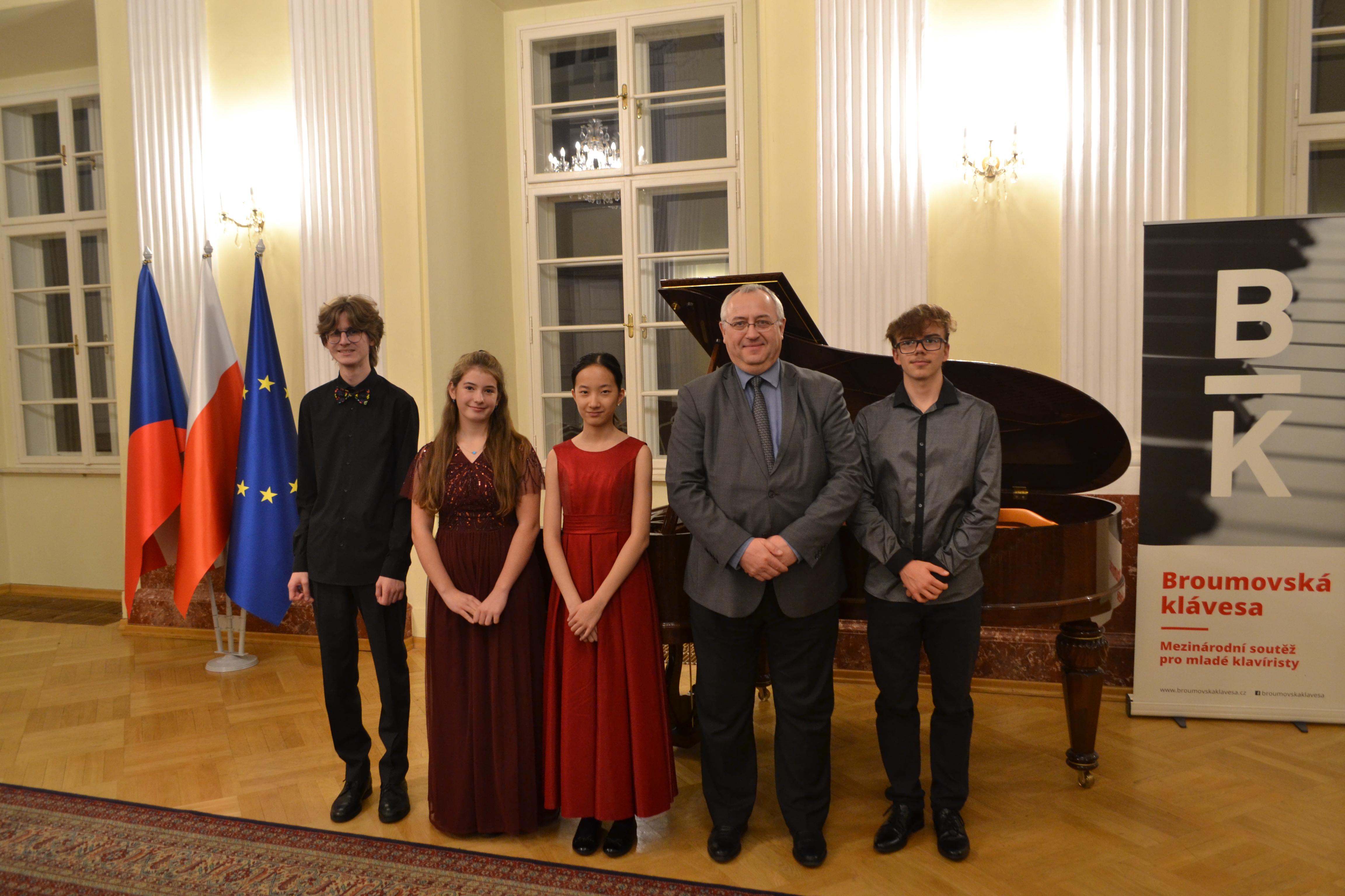 10 października w sali balowej Ambasady Rzeczypospolitej Polskiej w Pradze zabrzmiał wspaniały koncert – zagrali laureaci 14. edycji Międzynarodowego Konkursu dla Młodych Pianistów „Broumovská klávesa”. Valentýna Ibriqi, Linda Yuan, Vladimír Kuželka i Denis Stefanov – warto zapamiętać ich nazwiska. Ich interpretacje utworów Chopina, Smetany, Ravela, Rachmaninowa, Kapustina czy van Beethovena stworzyły niepowtarzalną, fantastyczną atmosferę. Owacjom nie było końca.