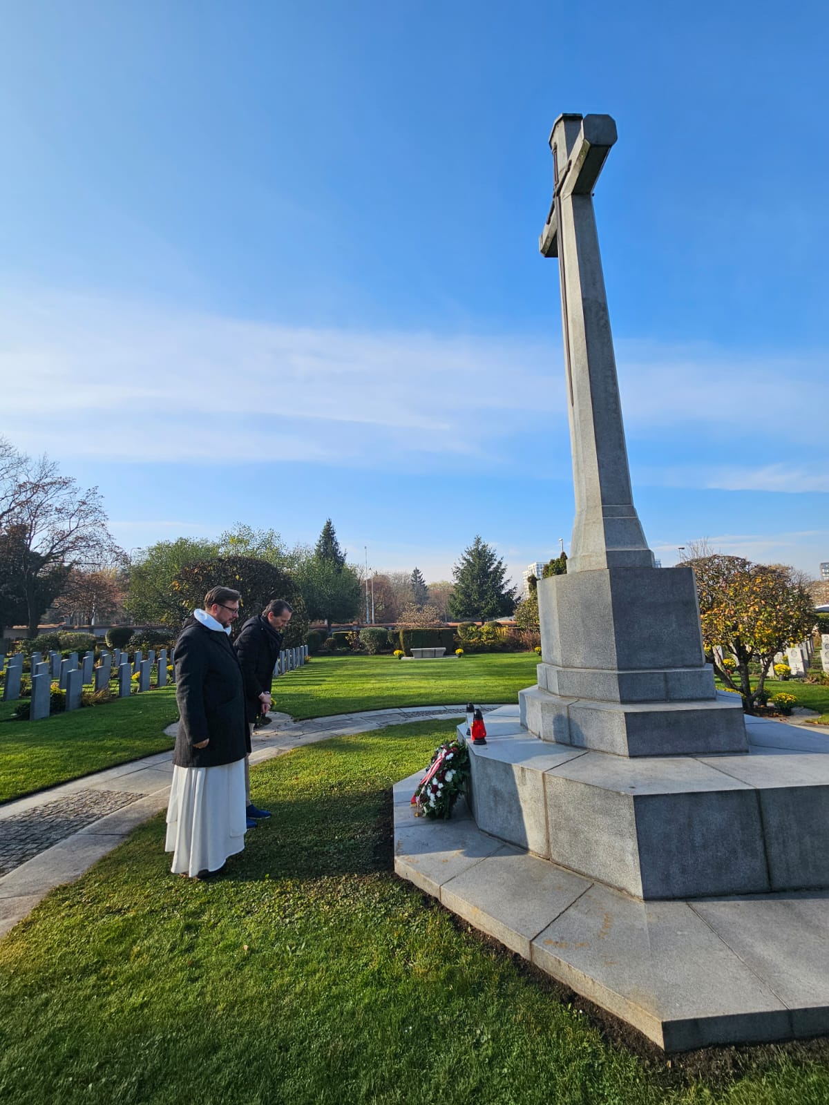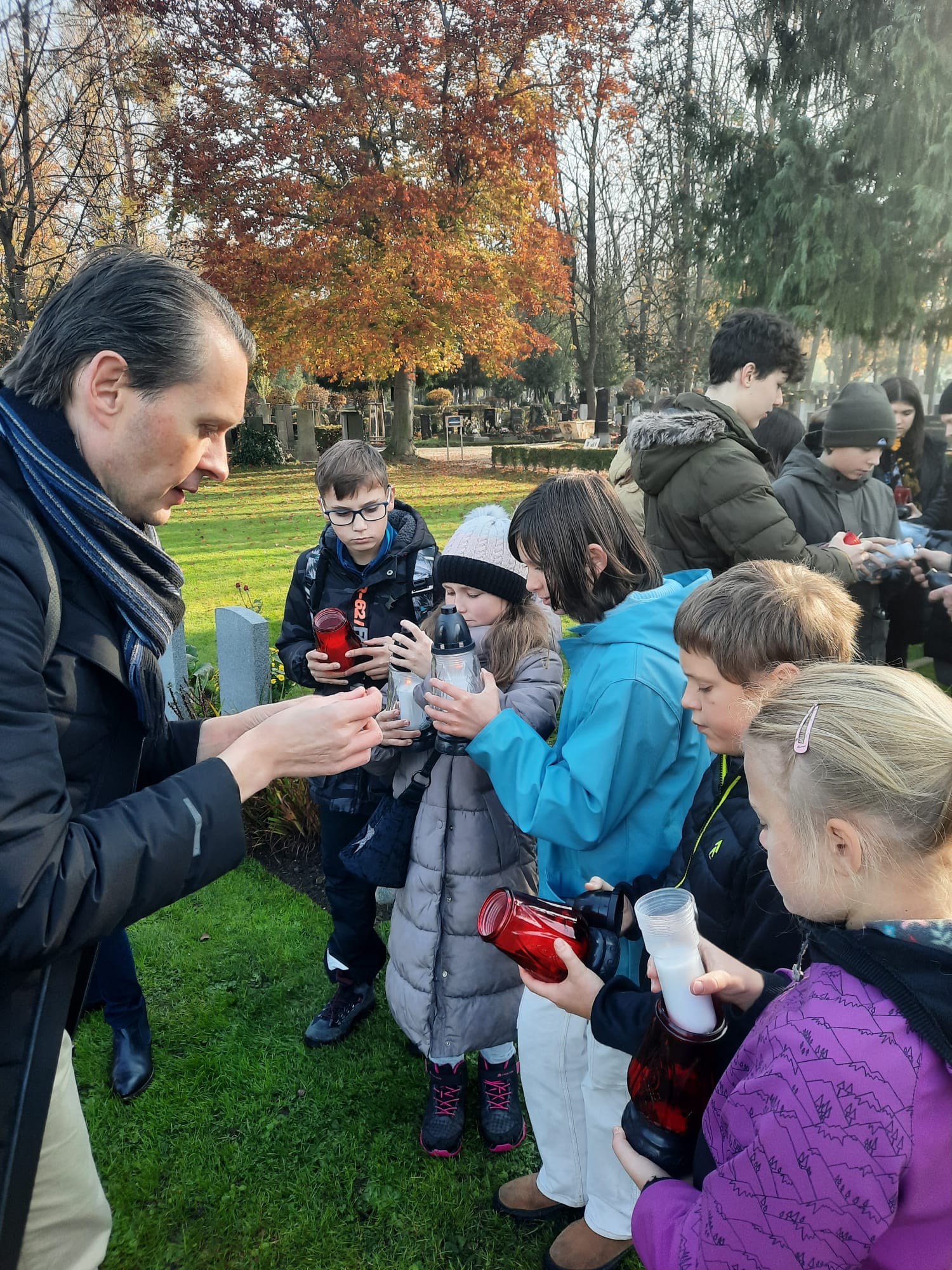 9 listopada na Cmentarzu Olszańskim w Pradze konsul RP w Pradze Piotr Leszczyński spotkał się z uczniami i nauczycielami Szkoły Polskiej im. św. Jadwigi w Pradze.