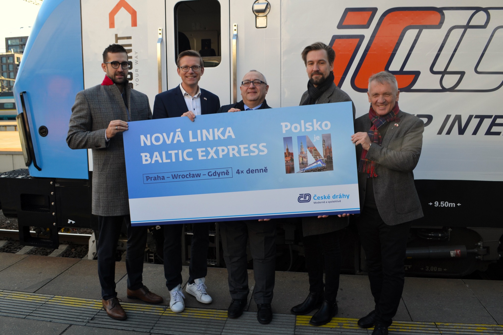 Jacek Gajewski, chargé d’affaires a.i. Rzeczypospolitej Polskiej w Republice Czeskiej wraz z Martinem Kupką, ministrem transportu Republiki Czeskiej, prezesem Czeskich Kolei Michalem Krapincem i dyrektorem agencji CzechTourism Františkiem Reismüllerem oficjalnie zainaugurowali Baltic Express - nowe połączenie kolejowe miedzy Polską i Czechami. Łączy ono Trójmiasto, przez Bydgoszcz, Poznań, Wrocław, Kłodzko, z Pardubicami i Pragą.Wzbogaca dotychczasowe połączenia i ułatwia dotarcie do Czech z północnej i zachodniej części Polski, a także – w drugą stronę – tworzy bezpośrednie połączenie Pragi z Dolnym Śląskiem, Wielkopolską, Kujawami i wybrzeżem Bałtyku.