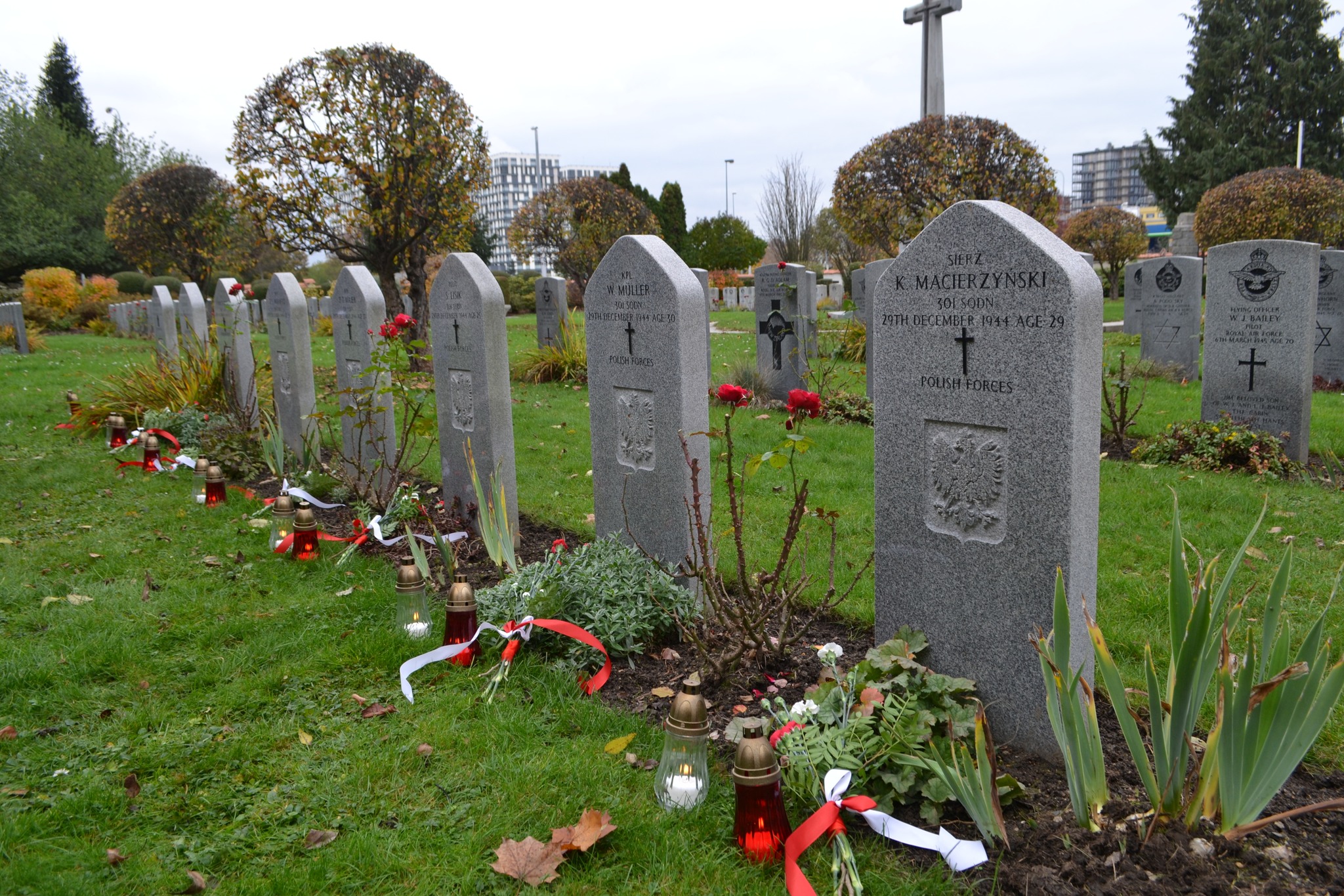 Załoga Halifax LL 187, tj. kpt. Franciszek Kryszczuk, st. sierż. Eugeniusz Krzeczewski, plut. Stanisław Lisik, sierż. Karol Macierzyński, sierż. Teodor Majer, kpr. Wiktor Müller, plut. Bolesław Uram i kpt. Tadeusz Wianecki spoczywają w części wojskowej Cmentarza Olszańskiego.