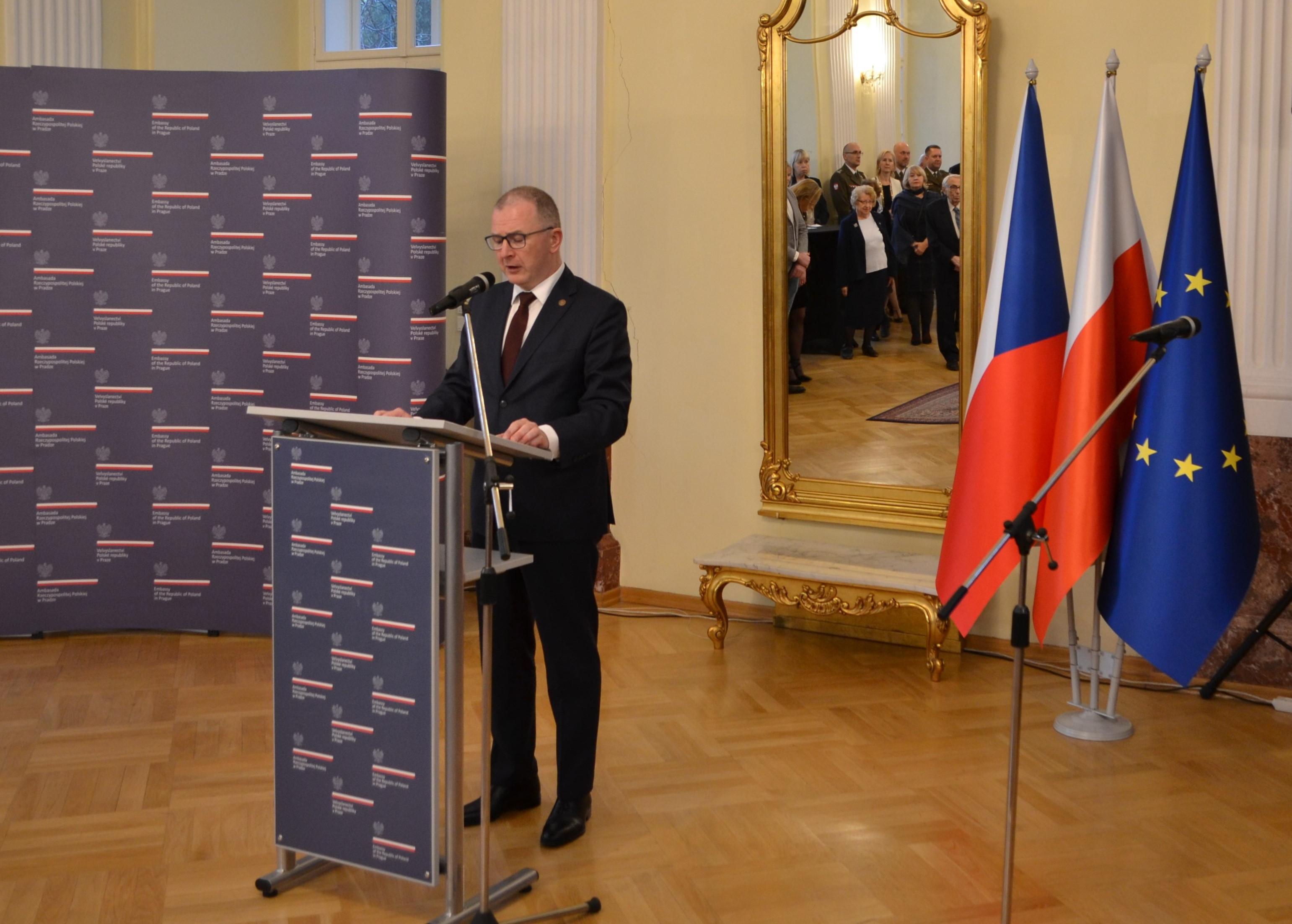 Ambasador gratulował odznaczonym i dziękował środowiskom polskim za działania na rzecz polskiego życia narodowego w RCz. Złożył też życzenia współpracownikom z okazji Dnia Służby Zagranicznej i przedstawił dyplomatów, którzy dołączyli do zespołu w ostatnich miesiącach. Podziękował też zaproszonym na uroczystość członkom czterech komisji wyborczych w Republice Czeskiej, którzy pracowali przy ostatnich wyborach parlamentarnych, a także przedstawicielom polskiego biznesu w RCz za wspieranie polskiej dyplomacji publicznej i kulturalnej.