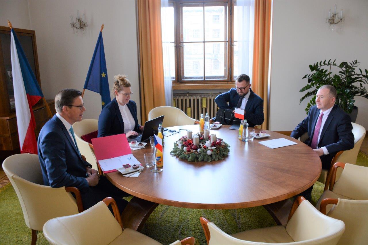 8 grudnia Ambasador RP Mateusz Gniazdowski spotkał się z Ministrem Transportu Republiki Czeskiej Martinem Kupką. Ambasador pogratulował sukcesu czeskiej prezydencji – wyników posiedzenia Rady ds. Transportu z 5 grudnia i przyjęcia tzw. podejścia ogólnego dot. rewizji sieci TEN-T. Rozmowa dotyczyła m.in. współpracy kolejowej – jej aspektów transgranicznych oraz planów budowy kolei dużych prędkości, budowy drogi D11 po stronie czeskiej (kontynuacji drogi S3), transportu wodnego śródlądowego i współpracy przy rozwoju odrzańskiej drogi wodnej. W rozmowie poruszono też kwestie dotyczące połączeń transportowych z Ukrainą, także kontekście rewizji TEN-T.