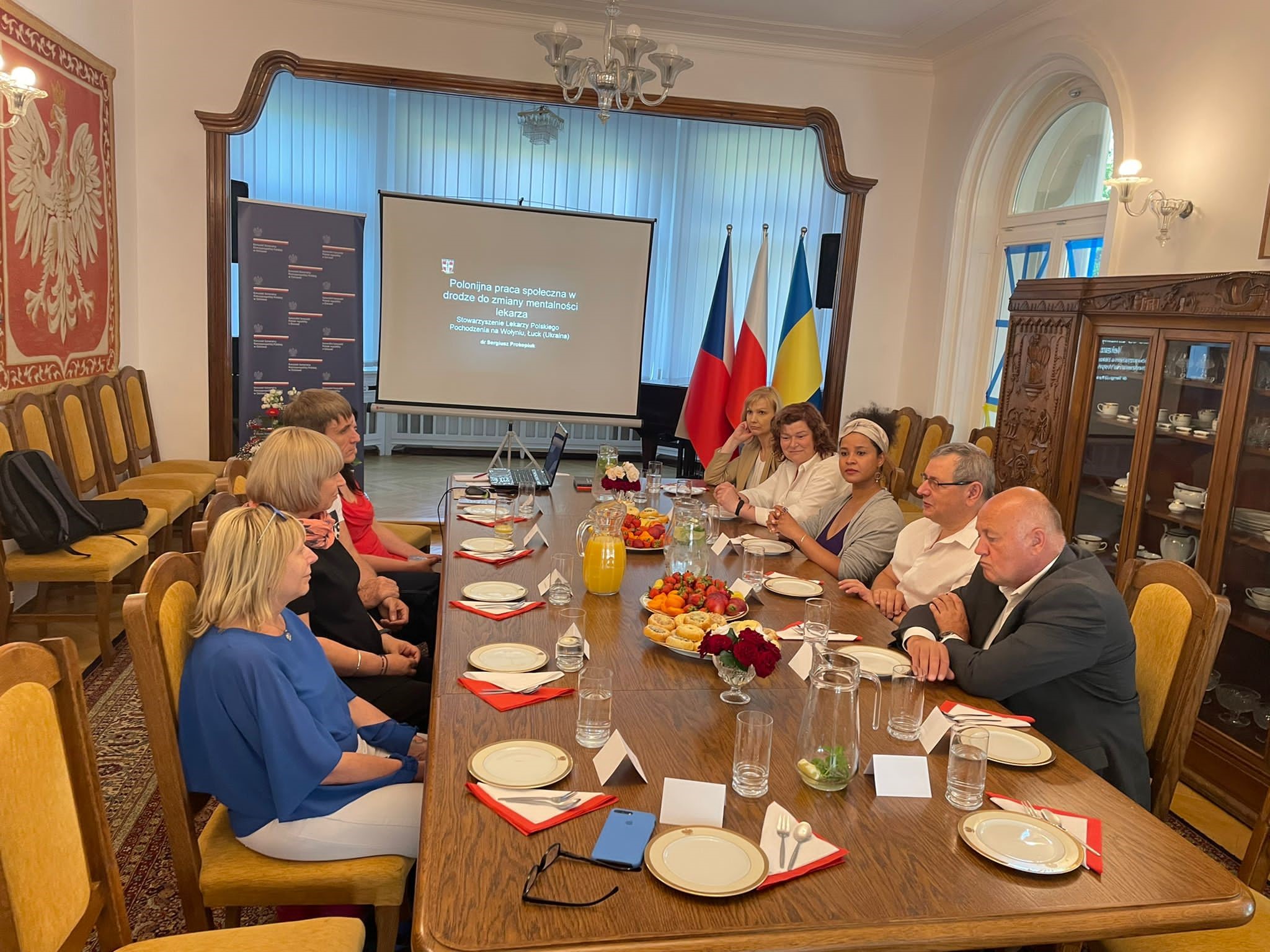 Prezes SLPPnW, Sergiusz Prokopiuk, przygotował prezentację o działalności Stowarzyszenia i jego historii. Zwróciła uwagę opieka nad licznymi polskimi miejscami pamięci, będącą jedną z misji organizacji. Zainteresowanie czeskich lekarzy wzbudził projekt „Białe soboty” - cykliczne akcje charytatywne pomocy medycznej, udzielnej bezpłatnie przez członków SLPPnW w maleńkich miejscowościach na Wołyniu.