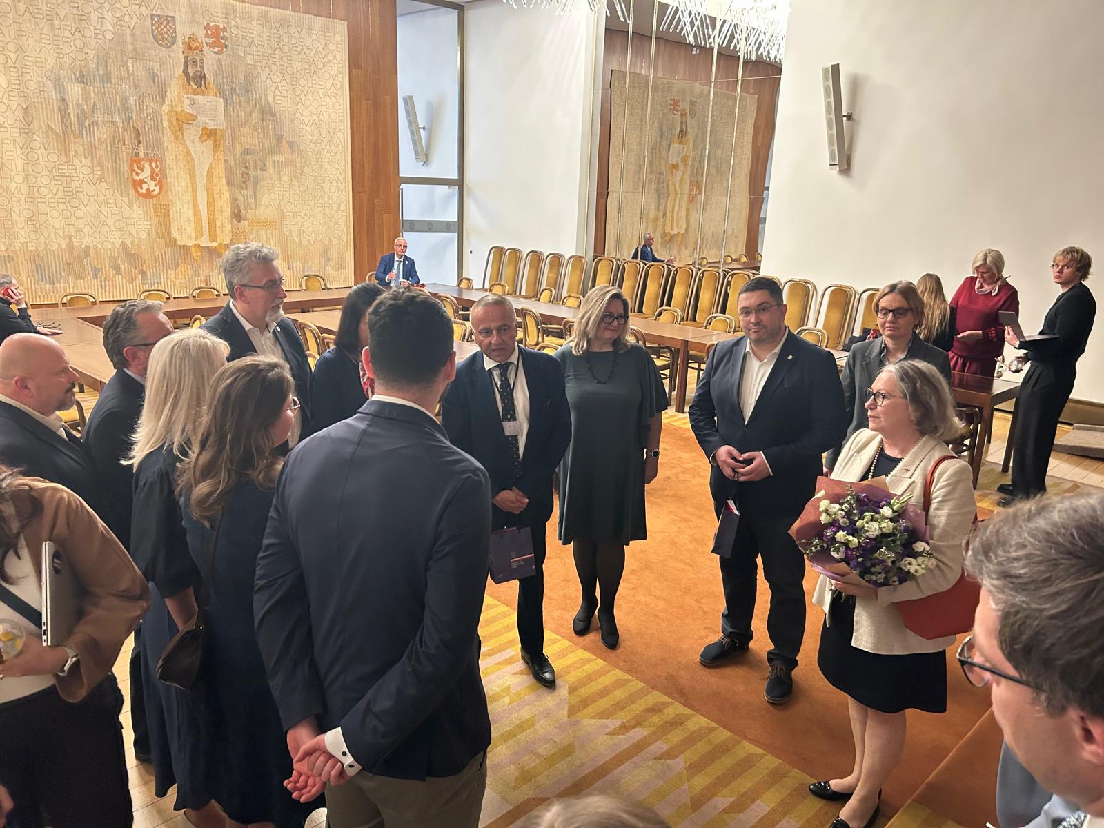 16 kwietnia odbyło się spotkanie chargé d'affaires a.i. Barbary Tuge-Erecińskiej i zespołu Ambasady RP w Pradze z członkami Czesko-Polskiej Grupy Międzyparlamentarnej. Wizyta w Izbie Poselskiej RCz była znakomitą okazją do nieformalnych rozmów, a także wymiany poglądów na temat bieżących wyzwań oraz polsko-czeskiej współpracy w kluczowych obszarach.