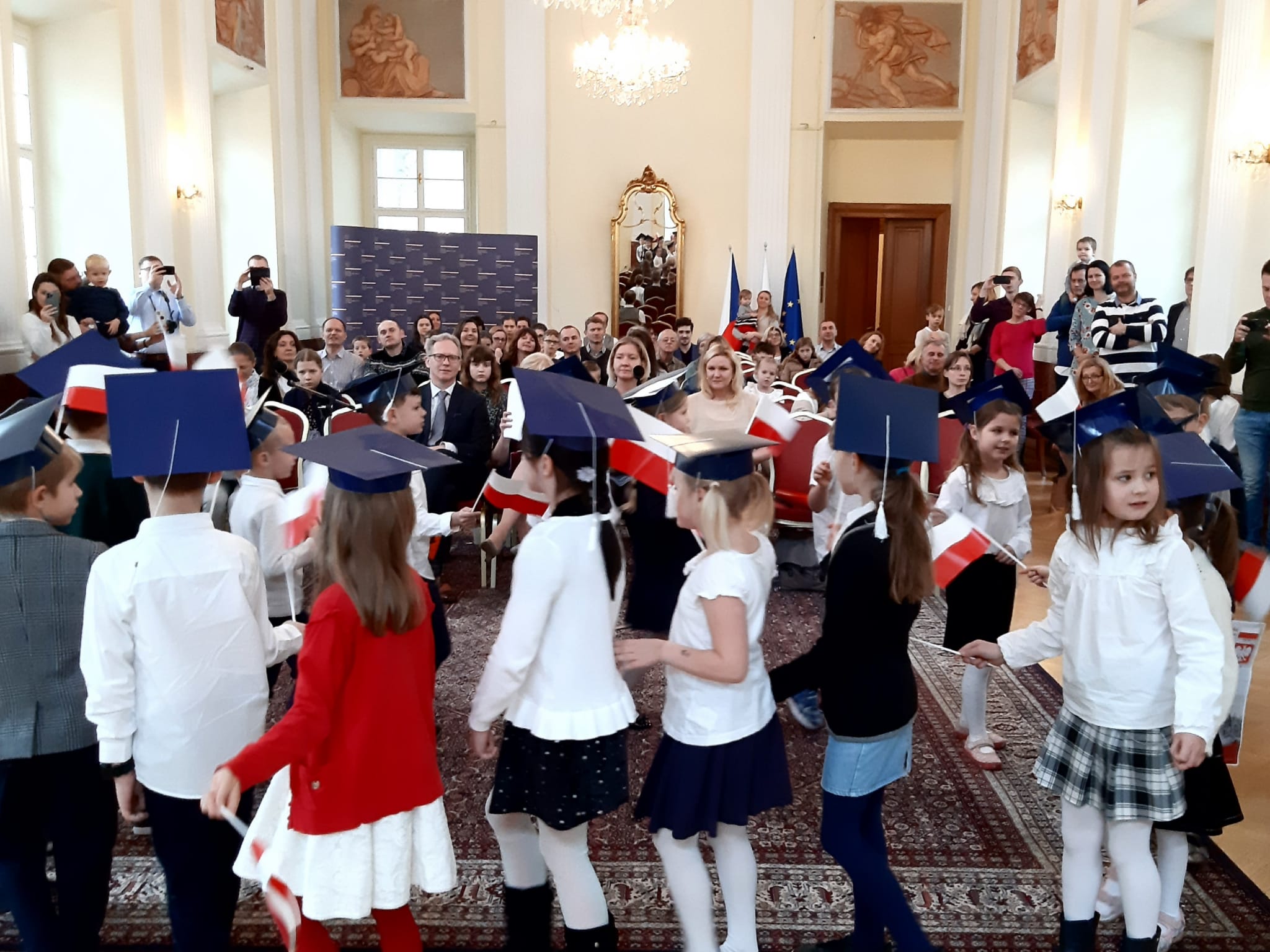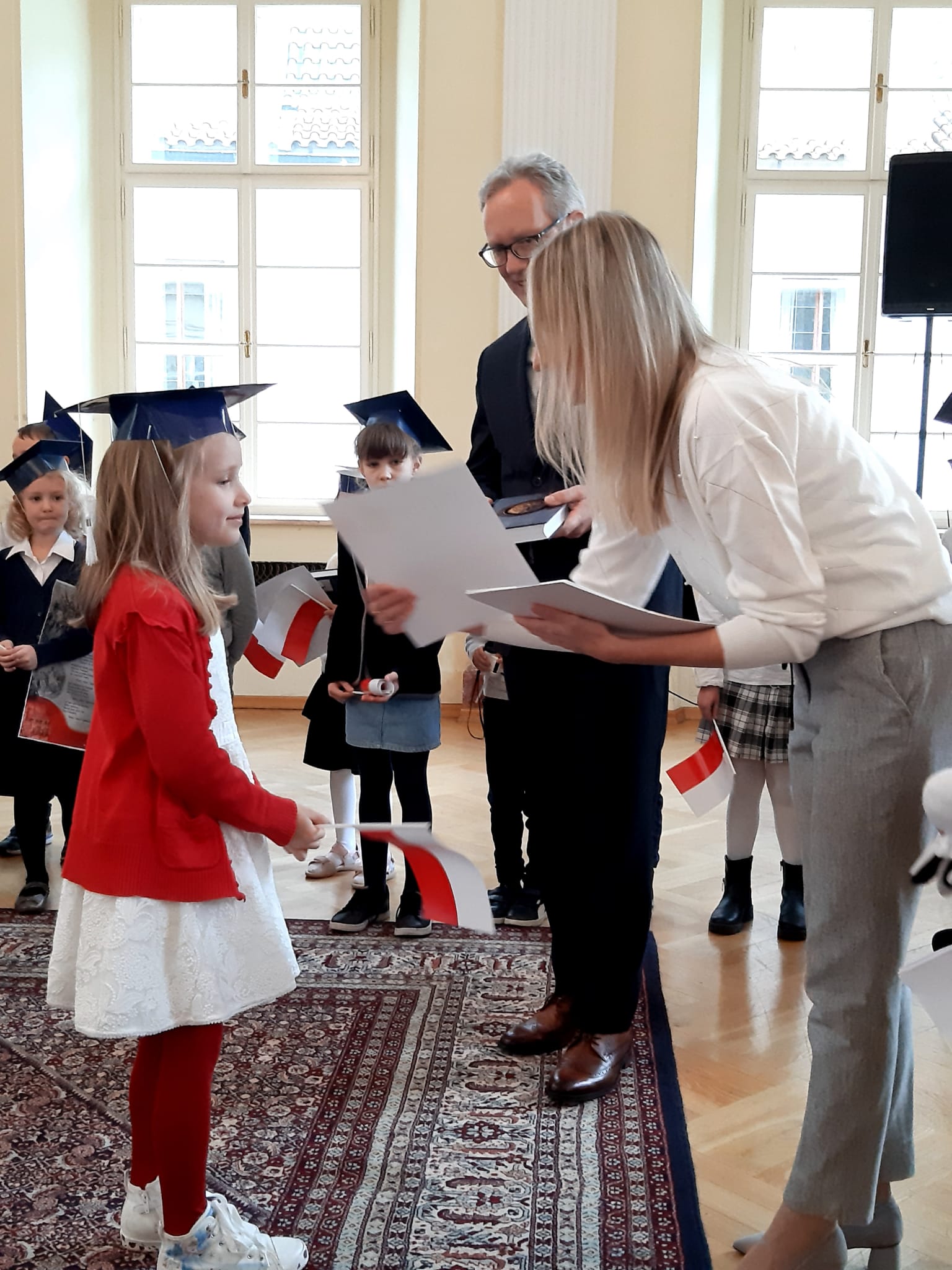 Spotkanie w historycznej sali balowej Ambasady było szczególnym wydarzeniem dla uczniów klas pierwszych, którzy zostali pasowani na uczniów Szkoły Polskiej w Pradze.