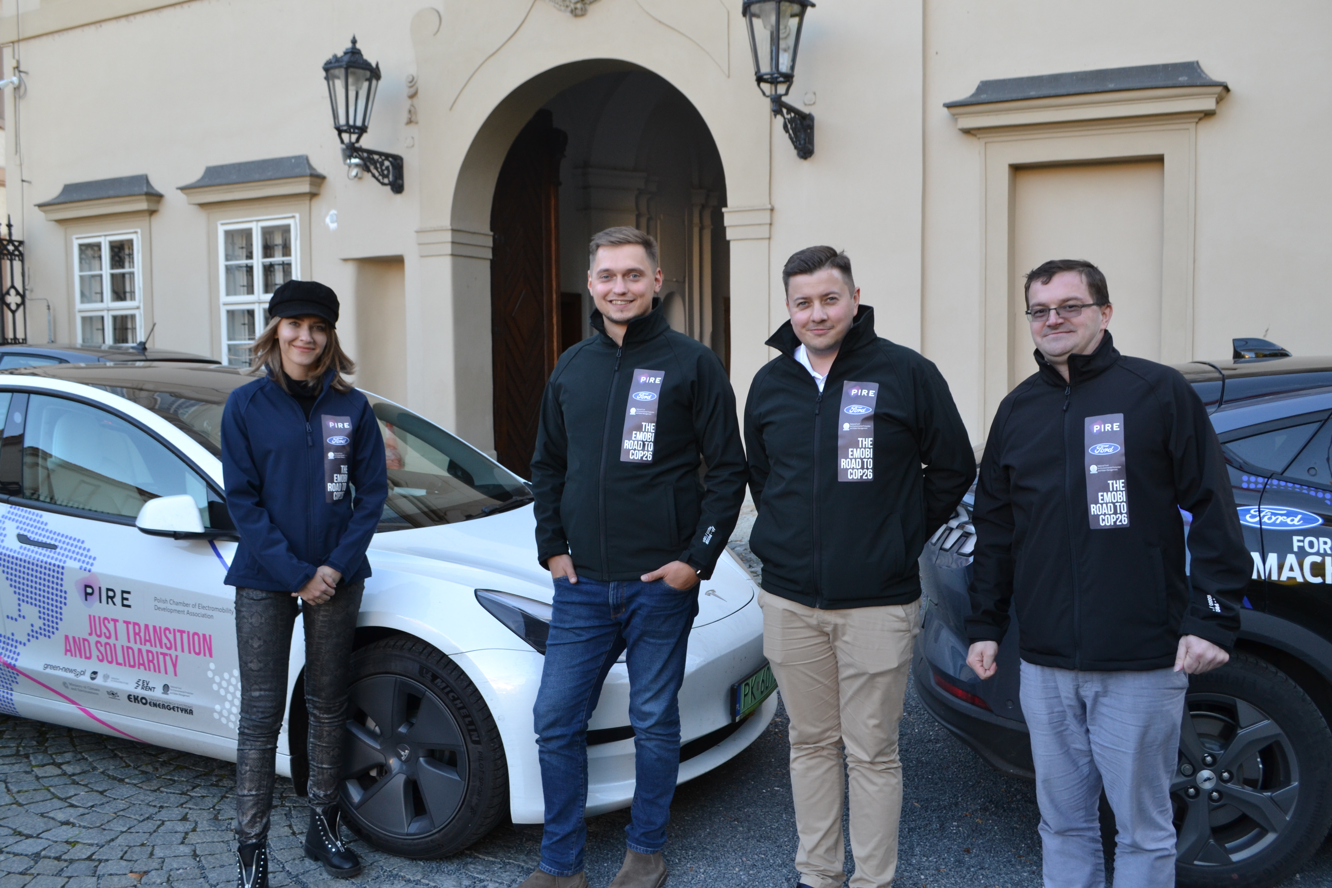 W wyprawie uczestniczą: Krzysztof Burda - Prezes Polskiej Izby Elektromobilności (PIRE), ks. Marcin Schmidt, Daniel Grzyb (PIRE), Damaris Pośpiech - Grzyb (PIRE). W Ambasadzie uczestnicy spotkali się z polskimi dyplomatami oraz dyplomatką Ambasady Brtyjskiej w Pradze - przedstawicielką kraju-gospodarza COP26.