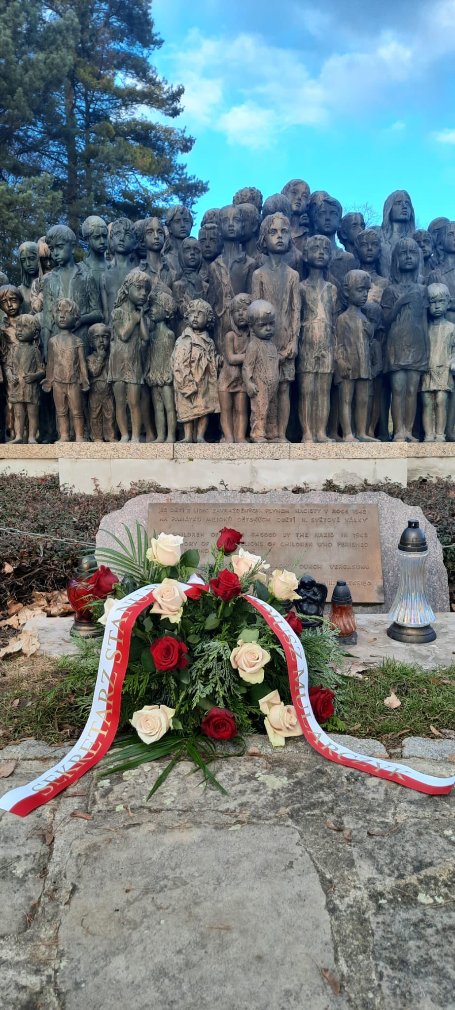 Wiceminister złożył również wizytę w Memoriale w Lidicach, gdzie oddał hołd ofiarom niemieckiego nazizmu składając kwiaty przy mogile pomordowanych mężczyzn z Lidic oraz przy pomniku dzieci.