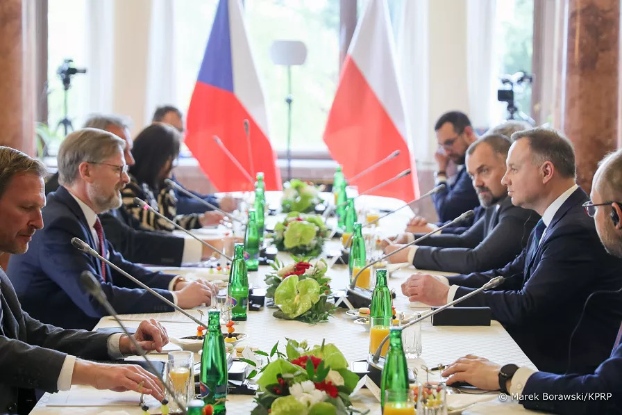 Na zakończenie swojej wizyty Prezydent RP rozmawiał z Premierem Czech, Petrem Fialą. Spotkanie było w znacznej większości poświęcone pomocy obu krajów dla walczącej z rosyjską agresją Ukrainy.