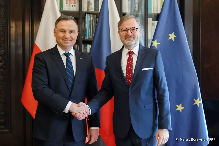 W środę Prezydent Andrzej Duda przebywał z wizytą w Republice Czeskiej. W programie rozmowy z Prezydentem tego kraju Milošem Zemanem oraz z Premierem Petrem Fialą. Celem wizyty jest koordynacja wsparcia obu krajów dla Ukrainy – komentował szef Biura Polityki Międzynarodowej Jakub Kumoch.