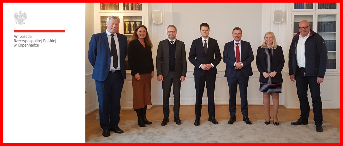 4 maja gośćmi Ambasady byli ambasador Królestwa Danii w Polsce O. Toft, Dyr. Departamentu ds. Zielonej Dyplomacji i Klimatu MSZ Danii, Rasmus Abildgaard Kristensen, Dyr. Elisabeth Søndergaard Krone z Centrum Współpracy Globalnej DEA, Dyr. Zarządzający State of Green Finn Mortensen oraz Wice-przewodniczący oraz Dyr. Generalny Energinet Torben Brabo. W spotkaniu ze strony Ambasady RP w Kopenhadze uczestniczyli chargé d’affaires a.i. Mateusza Mońko oraz radca ds. polityczno-ekonomicznych Monika Izydorczyk. Tematem spotkania była dwustronna współpraca gospodarcza i energetyczna.