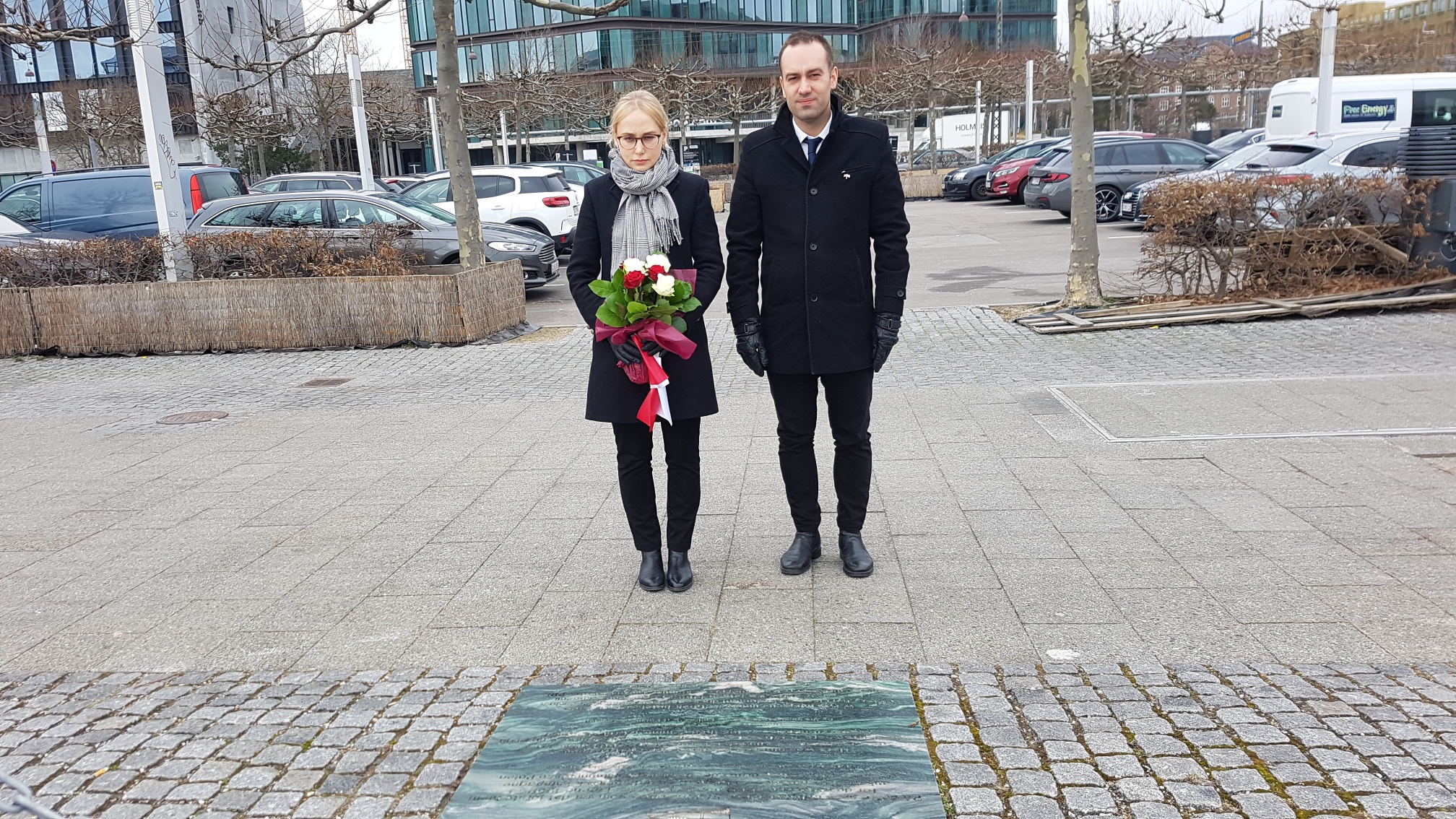 W związku z 54. rocznicą wydarzeń Marca 1968 w Polsce, Konsul RP Małgorzata Dąbecka oraz Jarosław Galuba złożyli 8 marca 2022 r. kwiaty przy tablicy upamiętniającej przybycie do Danii Polaków pochodzenia żydowskiego.