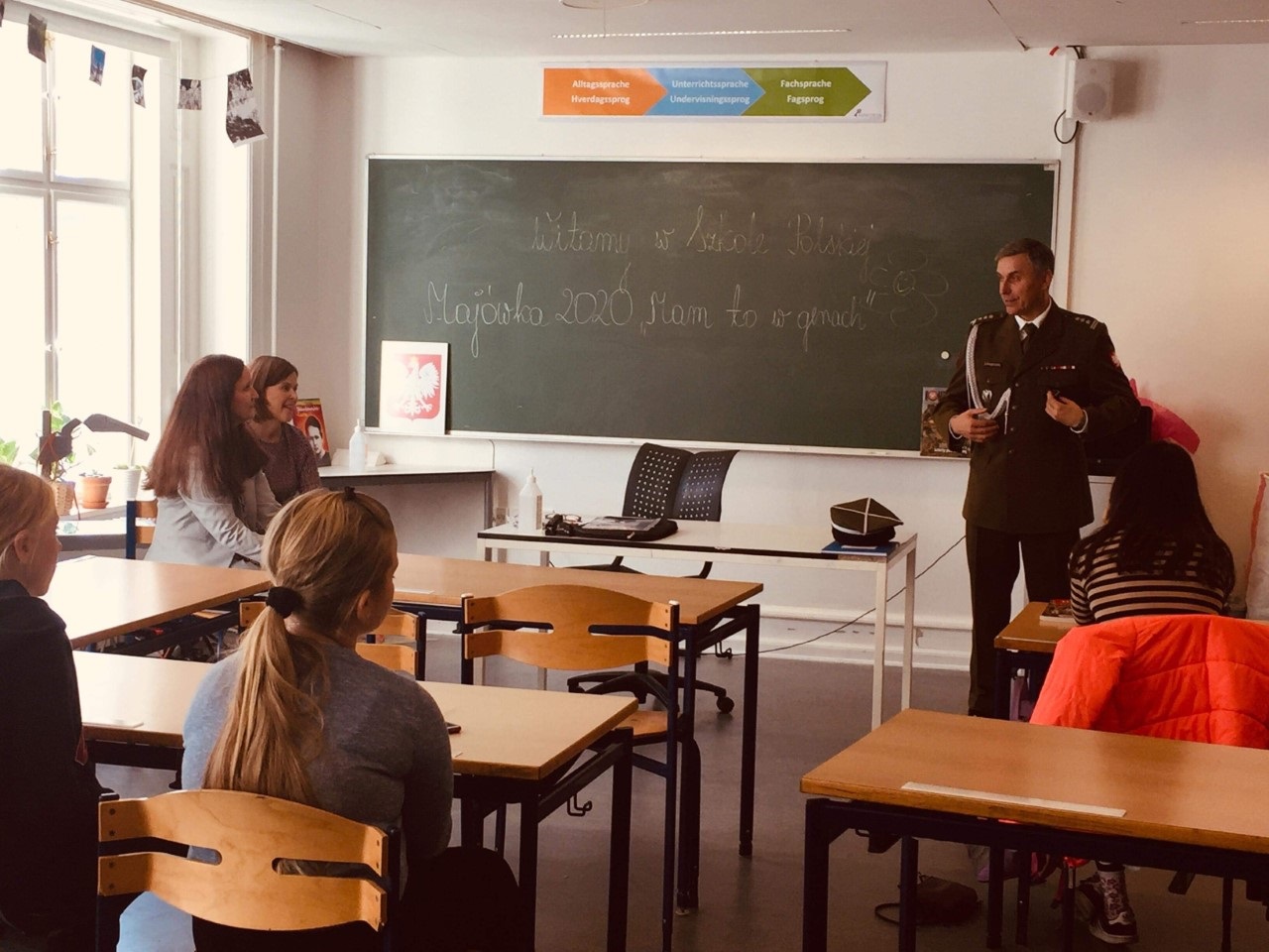 Uczniowie Szkoły Polskiej przy Ambasadzie RP w Kopenhadze spotkali się z Attaché Obrony płk. Andrzejem Sypniewskim w ramach obchodów 100. rocznicy Bitwy Warszawskiej.
