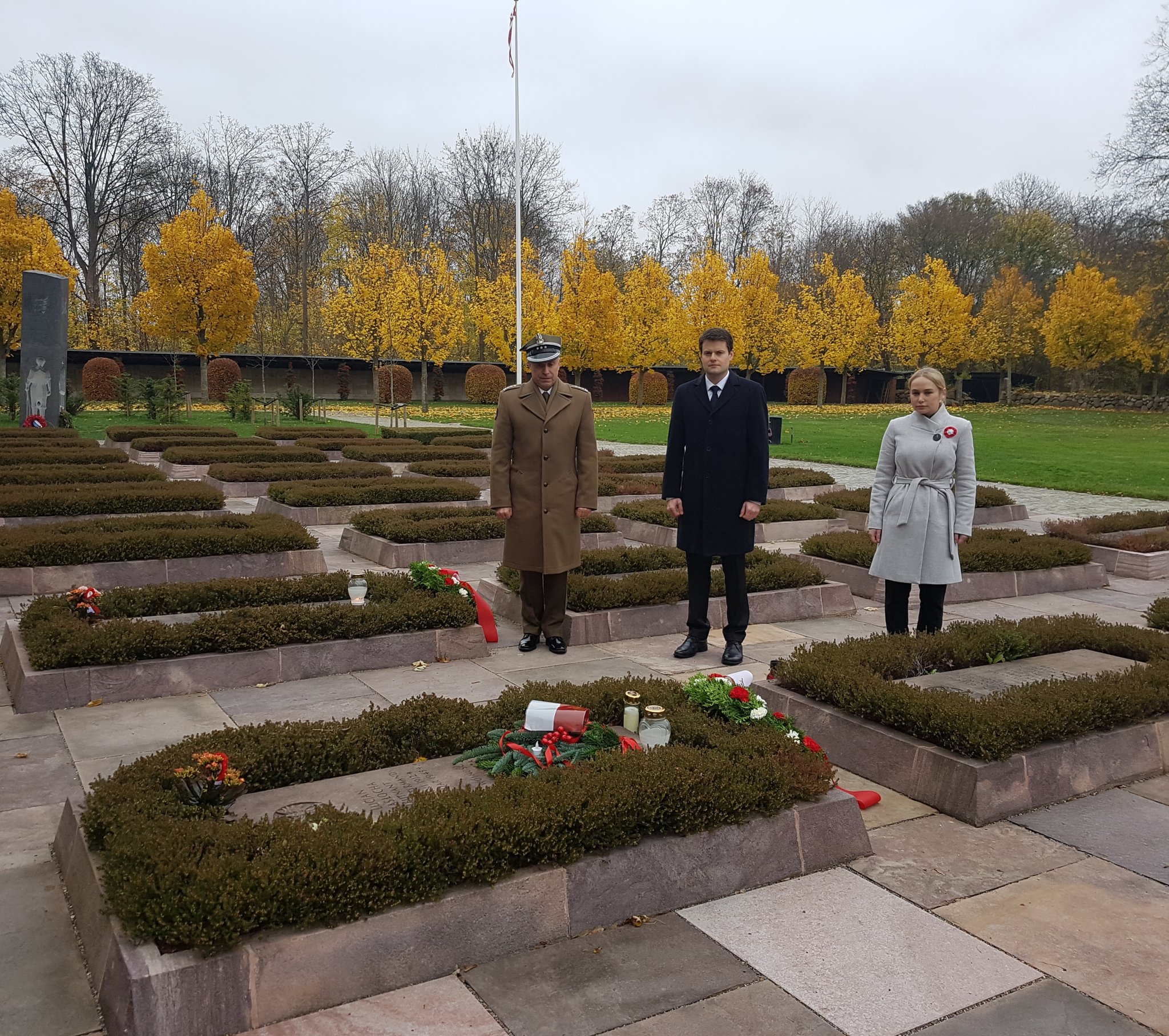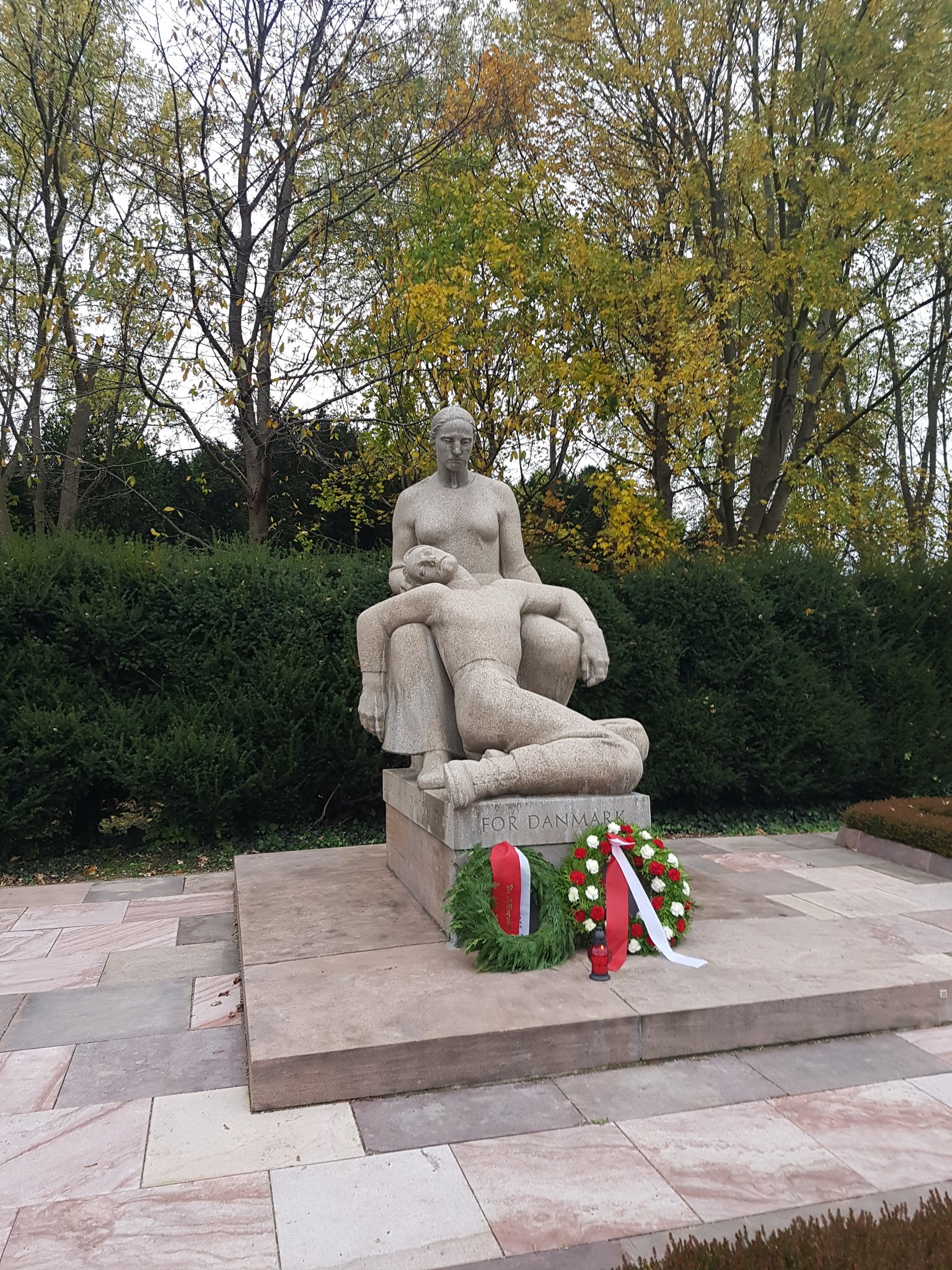 Przedstawiciele Ambasady RP w Kopenhadze Chargé d'affaires a.i Pan Mateusz Mońko, Pani Konsul RP Małgorzata Dąbecka oraz Pan Pułkownik Andrzej Sypniewski złożyli wieńce i zapalili znicze pod pomnikiem Matki i Syna oraz na grobach Anny Louise „Lone” Mogensen oraz Lucjana Masłochy upamiętniając ich poświęcenie i niezwykłe bohaterstwo w czasie II wojny światowej.