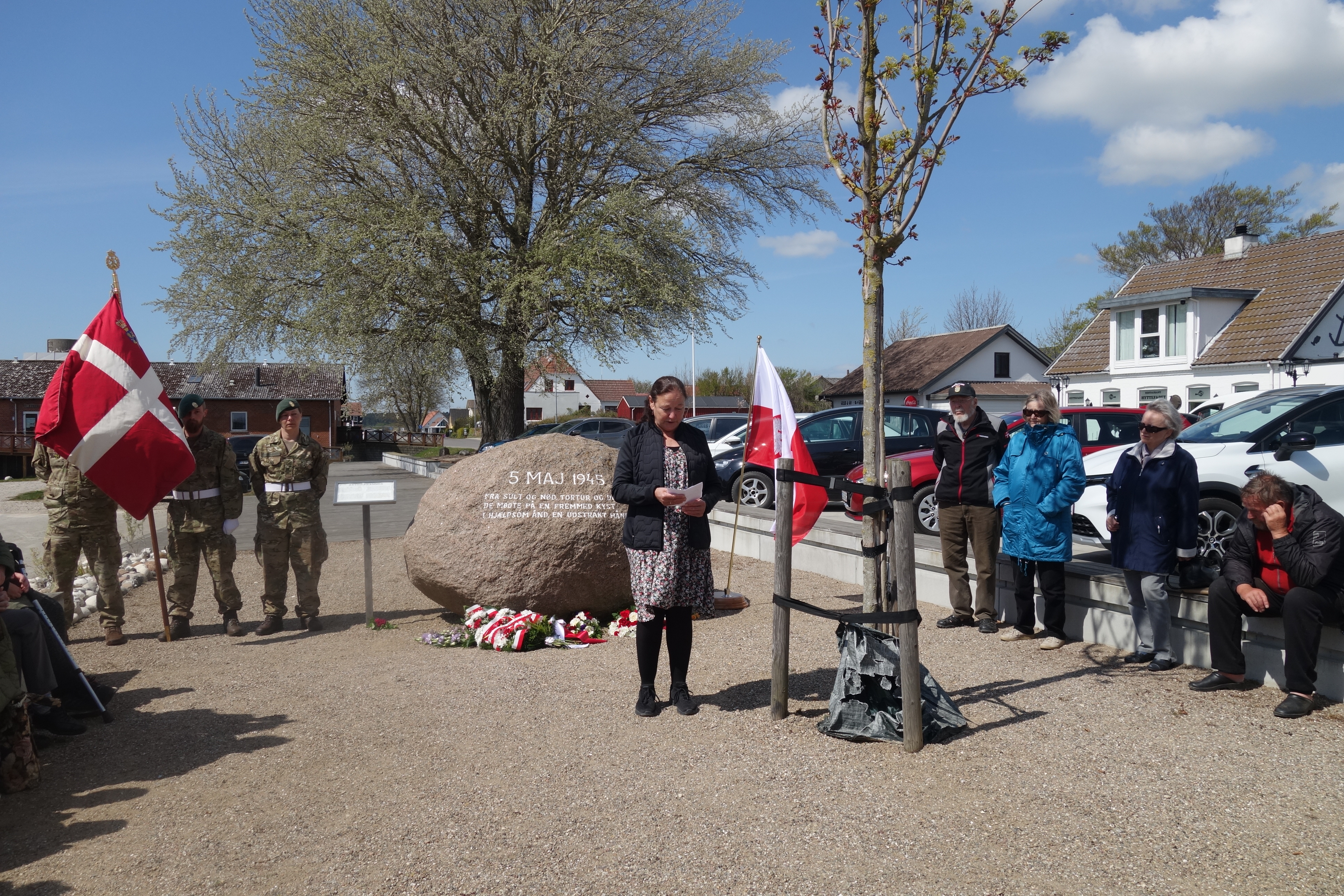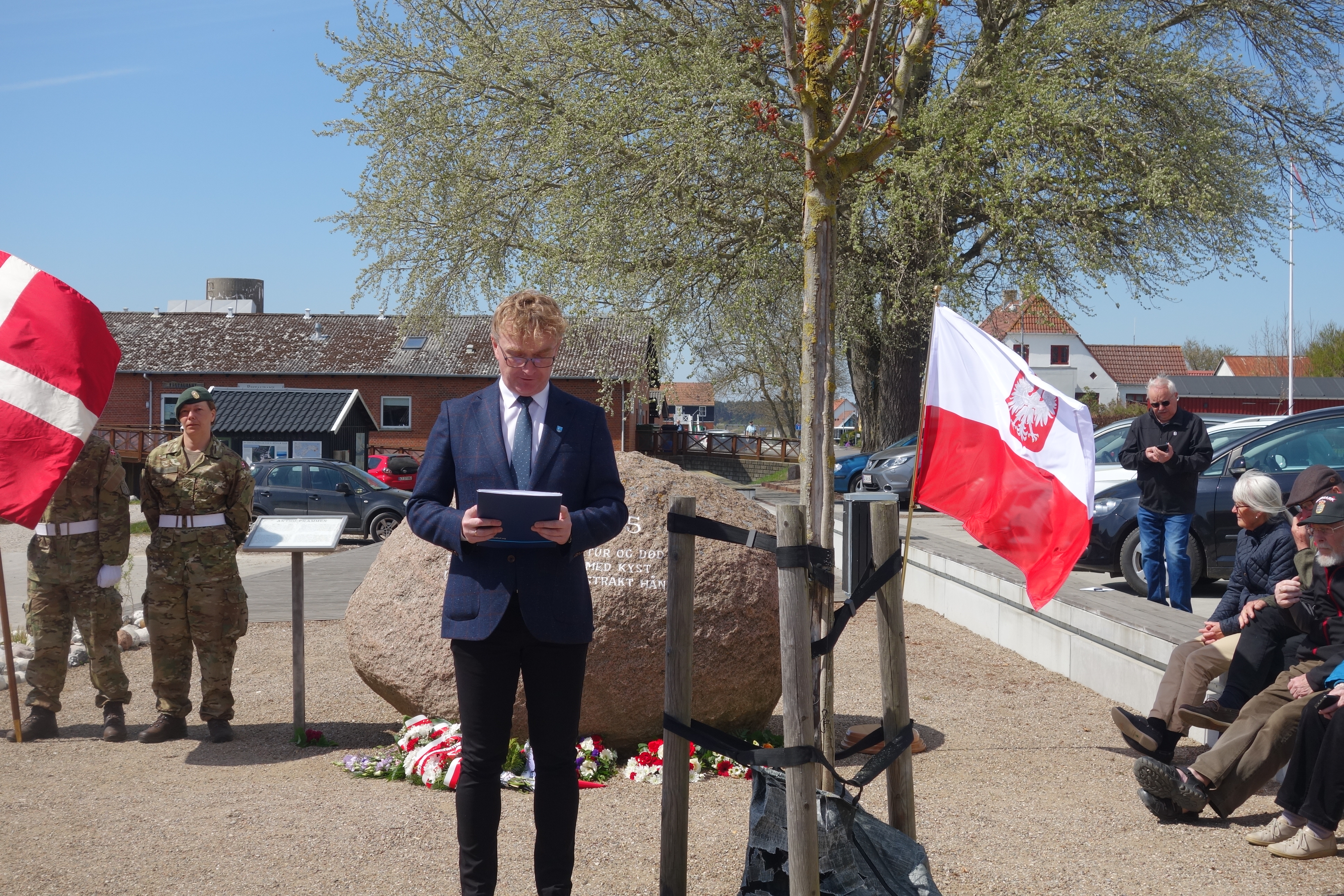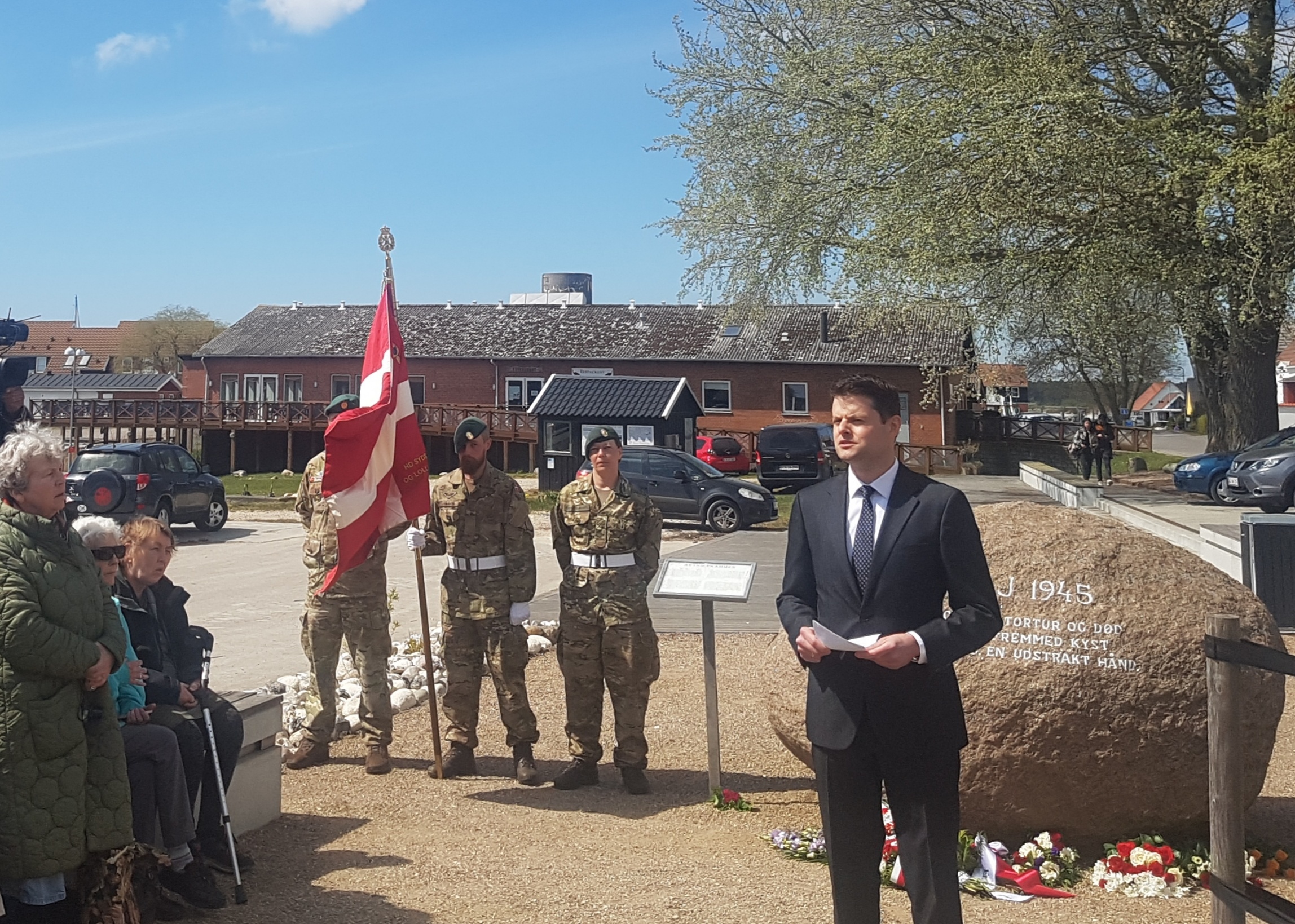 5 maja br. w Klintholm na wyspie Møn odbyła się uroczystość upamiętniająca przybicie barki z ewakuowanymi więźniami z niemieckiego nazistowskiego obozu koncentracyjnego Stutthof. Zastępca Ambasadora Mateusz Mońko podziękował lokalnej społeczności oraz duńskiemu Czerwonemu Krzyżowi za akcję ratunkową i pomoc okazaną więźniom. Wspólnie z zastępczynią burmistrza Gminy Vordingborg Else-Marie Langballe Sørensen złożyli kwiaty przy tablicy upamiętniającej wydarzenie.