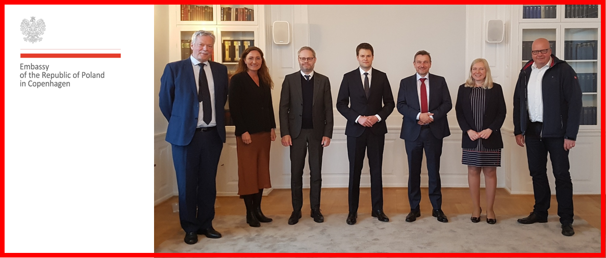 On 4 May, the guests of the Embassy were the Ambassador of the Kingdom of Denmark in Poland, O. Toft, Director of the Department of Green Diplomacy and Climate of the MFA of Denmark, Rasmus Abildgaard Kristensen, Director Elisabeth Søndergaard Krone from the DEA Global Cooperation Center, Managing Director of the State of Green Finn Mortensen and Vice-chairman and CEO of Energinet Torben Brabo. Chargé d'affaires a.i. Mateusz Mońko and counselor for political and economic affairs Monika Izydorczyk were representing the Embassy. The topic of the meeting was bilateral economic and energy cooperation.