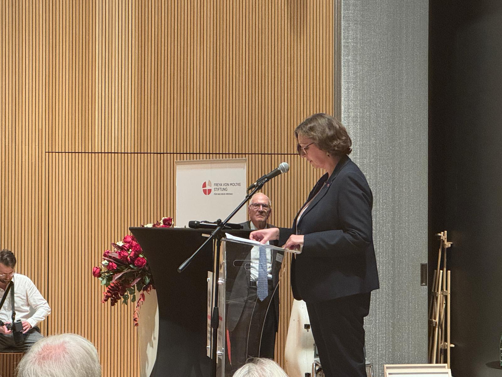 „Das heutige Jubiläum ist ein wunderbarer Anlass, um an Helmut James und Freya von Moltke zu erinnern und sie zu ehren. Sie sind bis heute eine Quelle der Inspiration für uns. Sie verkörpern das Beste der europäischen Tradition, die untrennbar mit christlichen Werten verbunden ist. Das ist besonders wichtig, denn die Zeit des Wohlstands und des Friedens neigt sich dem Ende zu. Es kommen dunkle Zeiten auf uns zu, in denen wir die richtigen Vorbilder brauchen werden.“
