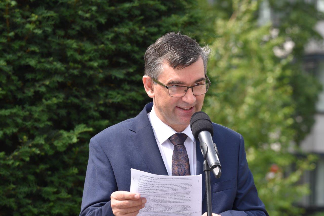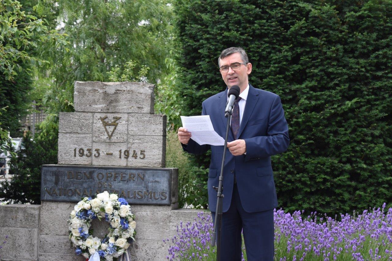In seiner Ansprache erinnerte der polnische Botschafter daran, dass am 14. Juni 1940 nicht nur das KZ Auschwitz symbolisch in Betrieb genommen wurde – ein Ort, an dem Millionen polnischer Bürgerinnen und Bürger sowie Menschen aus allen durch das Dritte Reich eroberten Ländern ihr Leben verloren. Es ist ein Datum, das für eine Tragödie Polens steht, denn das Land verlor im KZ Auschwitz-Birkenau und in anderen Konzentrationslagern Millionen Menschen; es steht für eine Tragödie des jüdischen Volkes, denn die weitaus meisten Opfer des KZ Auschwitz-Birkenau – über eine Million – machten Jüdinnen und Juden aus Polen, Ungarn, Frankreich, Holland, Griechenland und anderen unterjochten und besetzten europäischen Ländern, darunter auch Deutschland, aus.