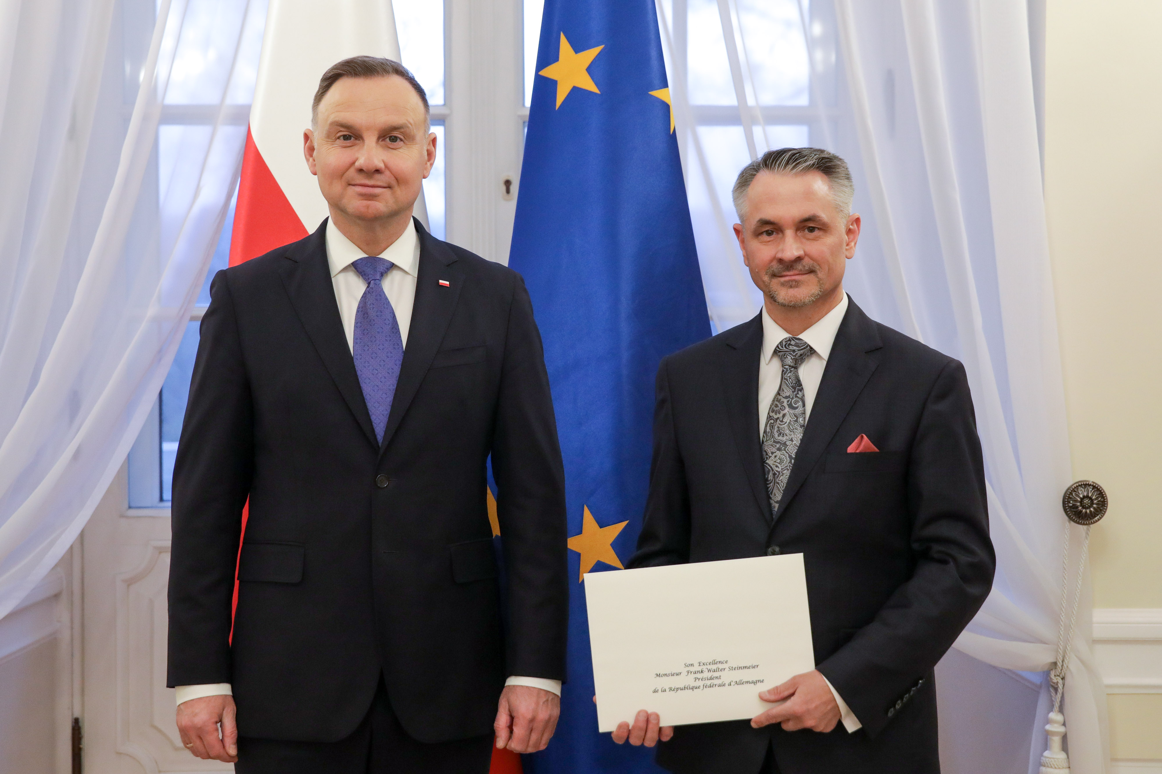 Am 22. November 2022 überreichte Botschafter Dariusz Pawłoś dem Bundespräsidenten Frank-Walter Steinmeier sein Beglaubigungsschreiben des Staatspräsidenten der RP Andrzej Duda.
