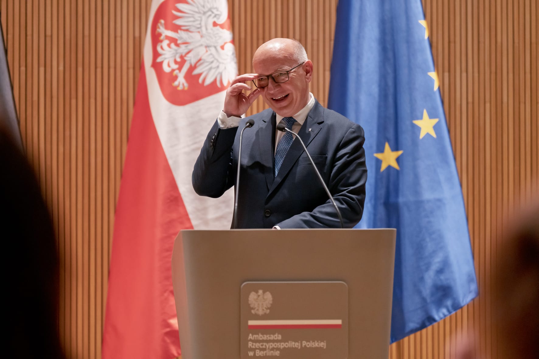 „Der neue Botschaftsbau in Berlin spiegelt eindrucksvoll wider, zu welch modernem Staat Polen geworden ist", sagte Kai Wegner, Regierender Bürgermeister von Berlin. Die deutsche Hauptstadt führt in diesem Jahr den Vorsitz der Ministerpräsidentenkonferenz Ost, deren Ziel es ist, über wichtige Angelegenheiten der östlichen Regionen Deutschlands zu beraten. In seiner Rede würdigte Bürgermeister Kai Wegner den Beitrag der polnischen Community zur Entwicklung der Stadt und bekräftigte das fortwährende Engagement des Berliner Senats für die Errichtung des Denkmals für die polnischen Opfer des Zweiten Weltkriegs sowie die Eröffnung des Deutsch-Polnischen Hauses in Berlin.