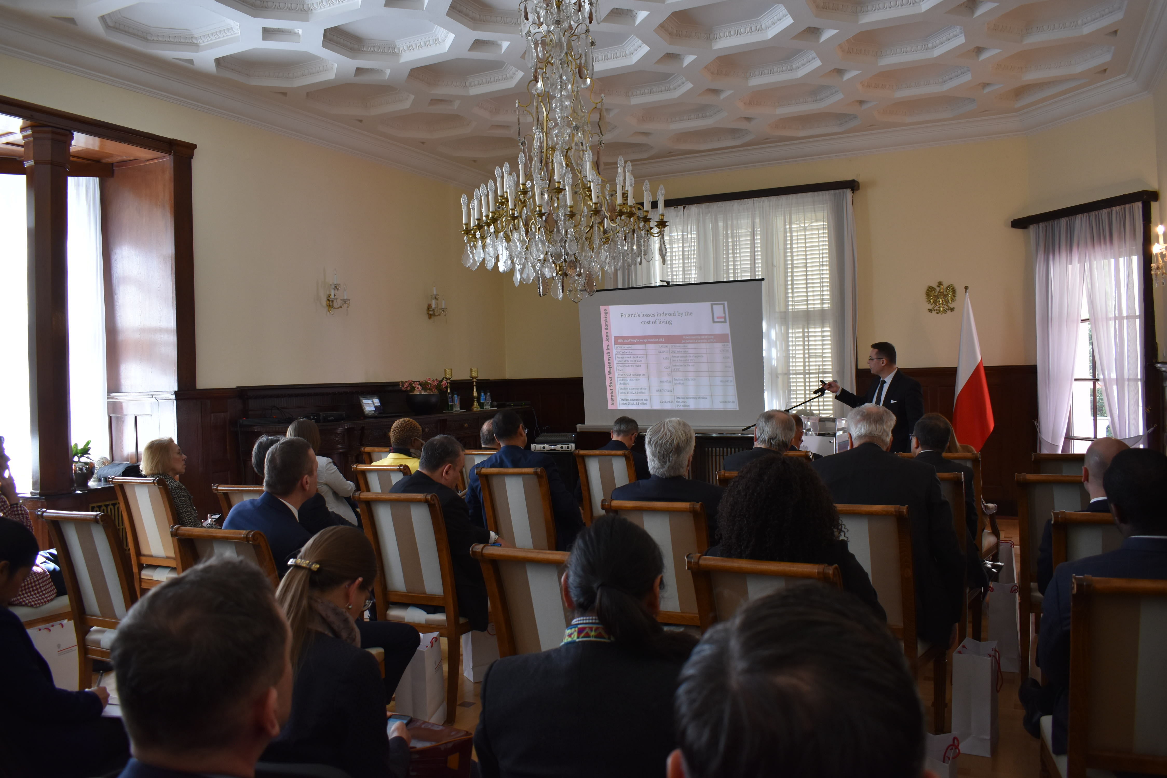 Das Seminar war ein Teil der internationalen Informationskampagne, mit der die Regierung der Republik Polen die Aufmerksamkeit auf das wichtige Thema der Verluste lenken möchte, die die von Deutschland überfallenen und besetzten Länder in der Zeit von 1939 bis 1945, erlitten haben.