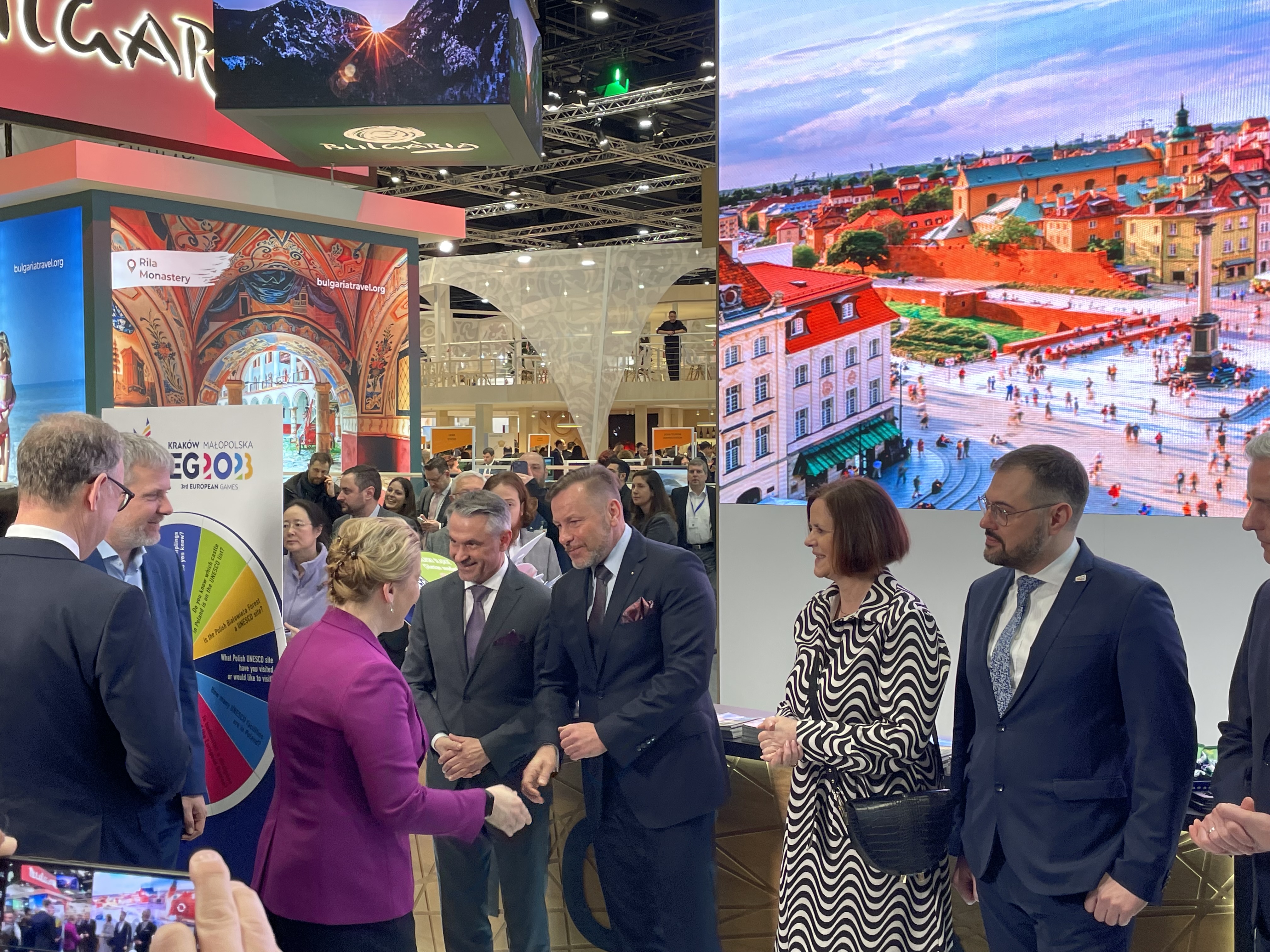 Am 7. März traf der Botschafter der Republik Polen, Dariusz Pawłoś auf der Tourismusmesse ITB in Berlin, mit den Vertretern der polnischen Tourismusbranche zusammen. Am polnischen Nationalstand führte er u.a. Gespräche mit den Vertretern von Woiwodschaften, der regionalen Tourismuskammern wie auch der Städte. Die Eröffnung der Messe bot zudem Gelegenheit zu einem Treffen mit der Berliner Bürgermeisterin F. Giffey und der Messeleitung, die den polnischen Stand besuchten.