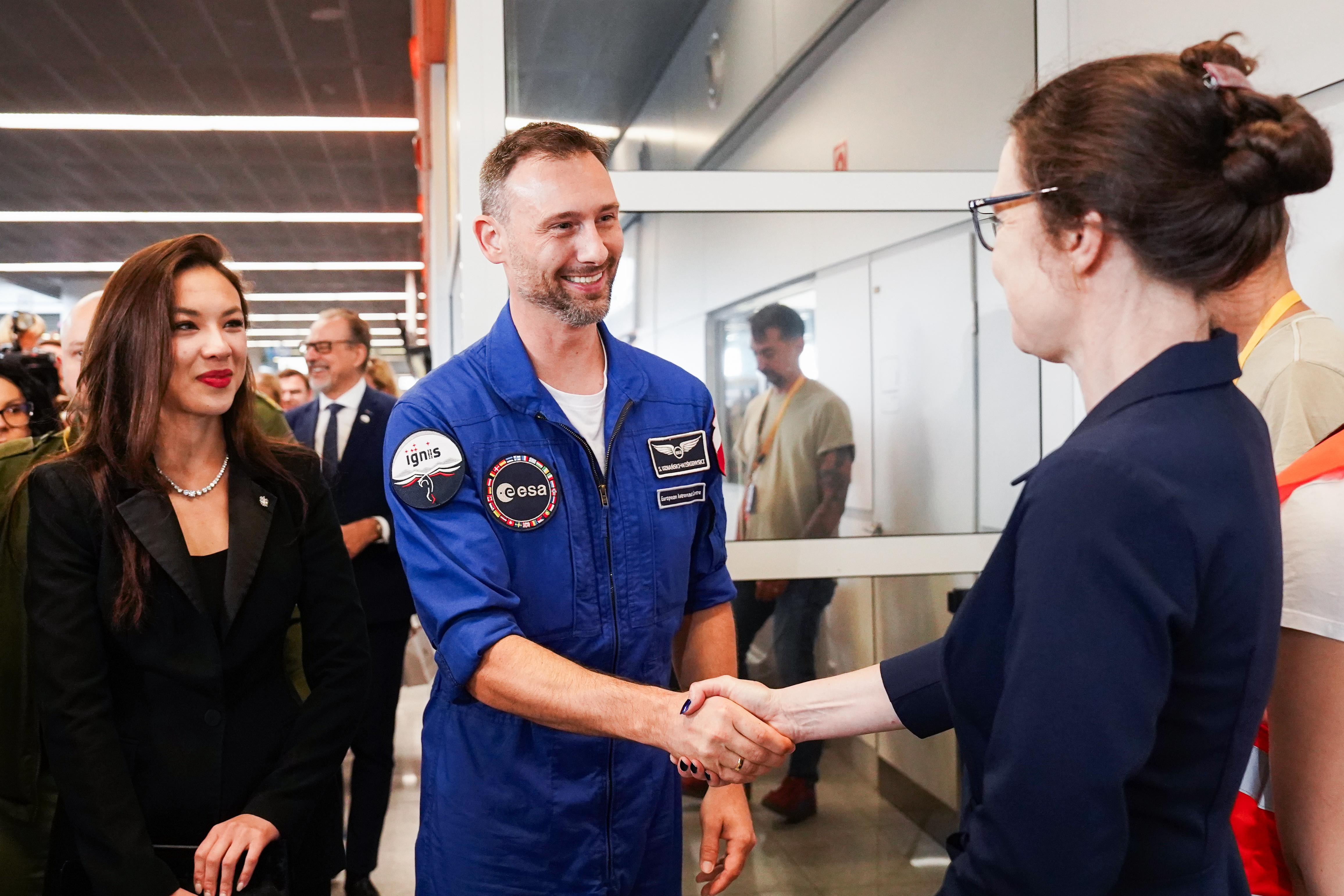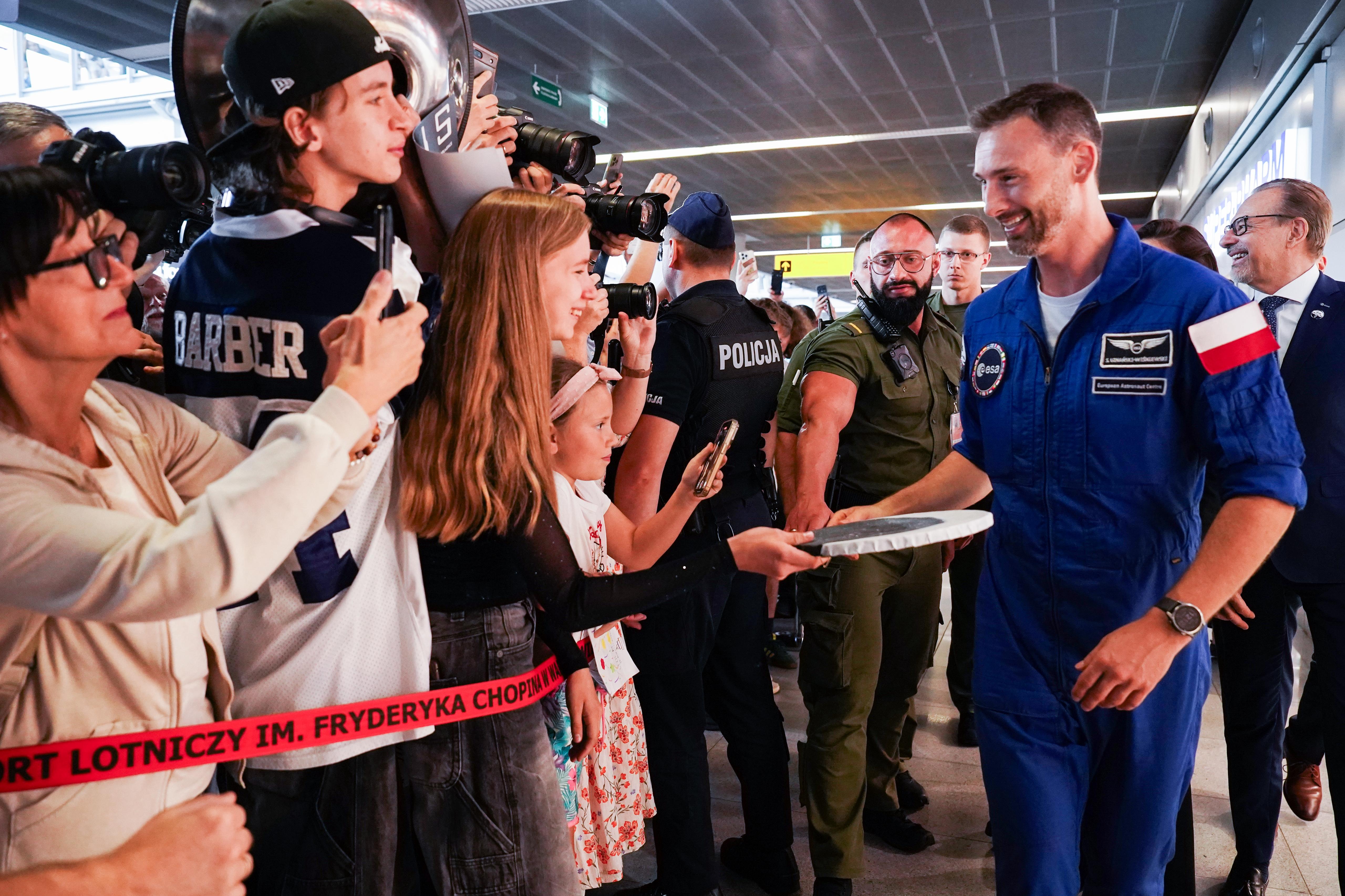 Upon successful accomplishment of the first national technological and scientific mission at ISS, the Polish astronaut returned today to the country. At the Warsaw Chopin Airport, he was welcomed by the President of POLSA, crowds of space, science and technology enthusiasts and the journalists. The first Pole in space since decades accomplished his 20-day long mission at the International Space Station. Poland gains prestige, new competences and real participation in manned space exploration.