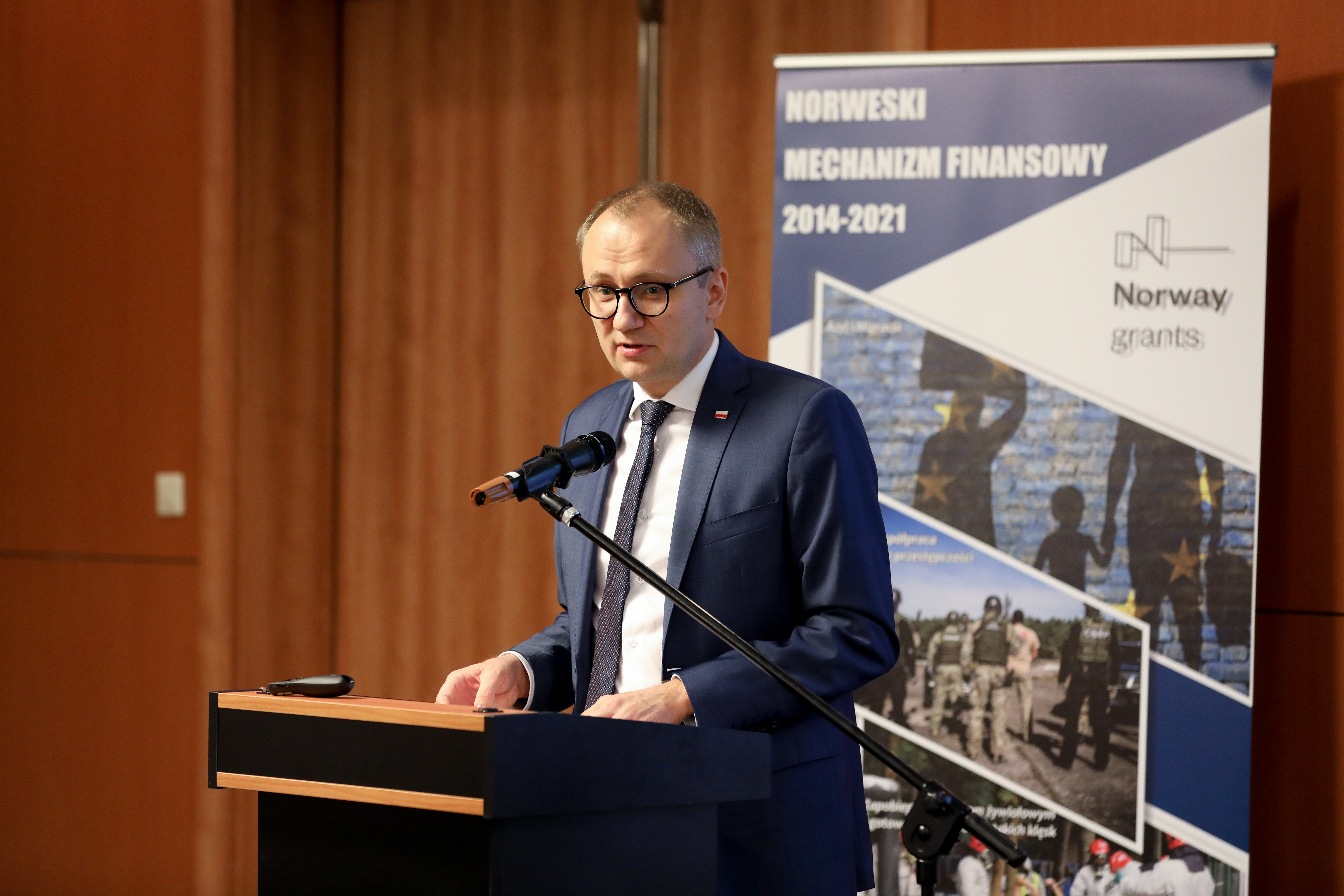 Spotkanie otworzył Pan Błażej Poboży - Podsekretarz Stanu w Ministerstwie Spraw Wewnętrznych i Administracji wraz z Panem Olavem Myklebustem - Ambasadorem Królestwa Norwegii w Polsce.