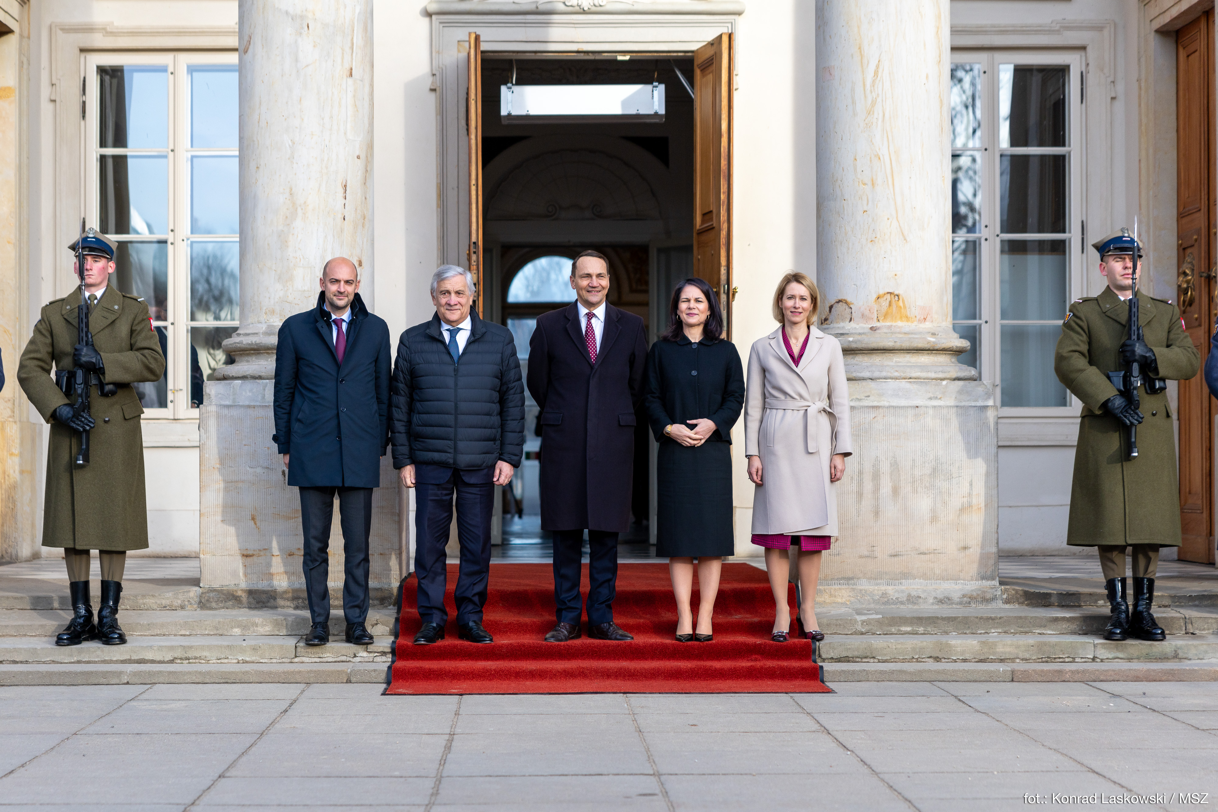Support for Ukraine and advancements in transatlantic relations prevailed on the agenda of today’s talks among the foreign ministers of Poland, Germany, France, Italy, and Spain—the Big Five European Union member states—and the United Kingdom, held as a hybrid event hosted by the Palace on the Isle in Warsaw. The chief diplomats of Italy, Germany, and France, and Kaja Kallas, the incoming High Representative of the Union for Foreign Affairs and Security Policy, arrived in Warsaw to take part in the meeting. The foreign ministers of Spain and the United Kingdom joined the event from remote locations.