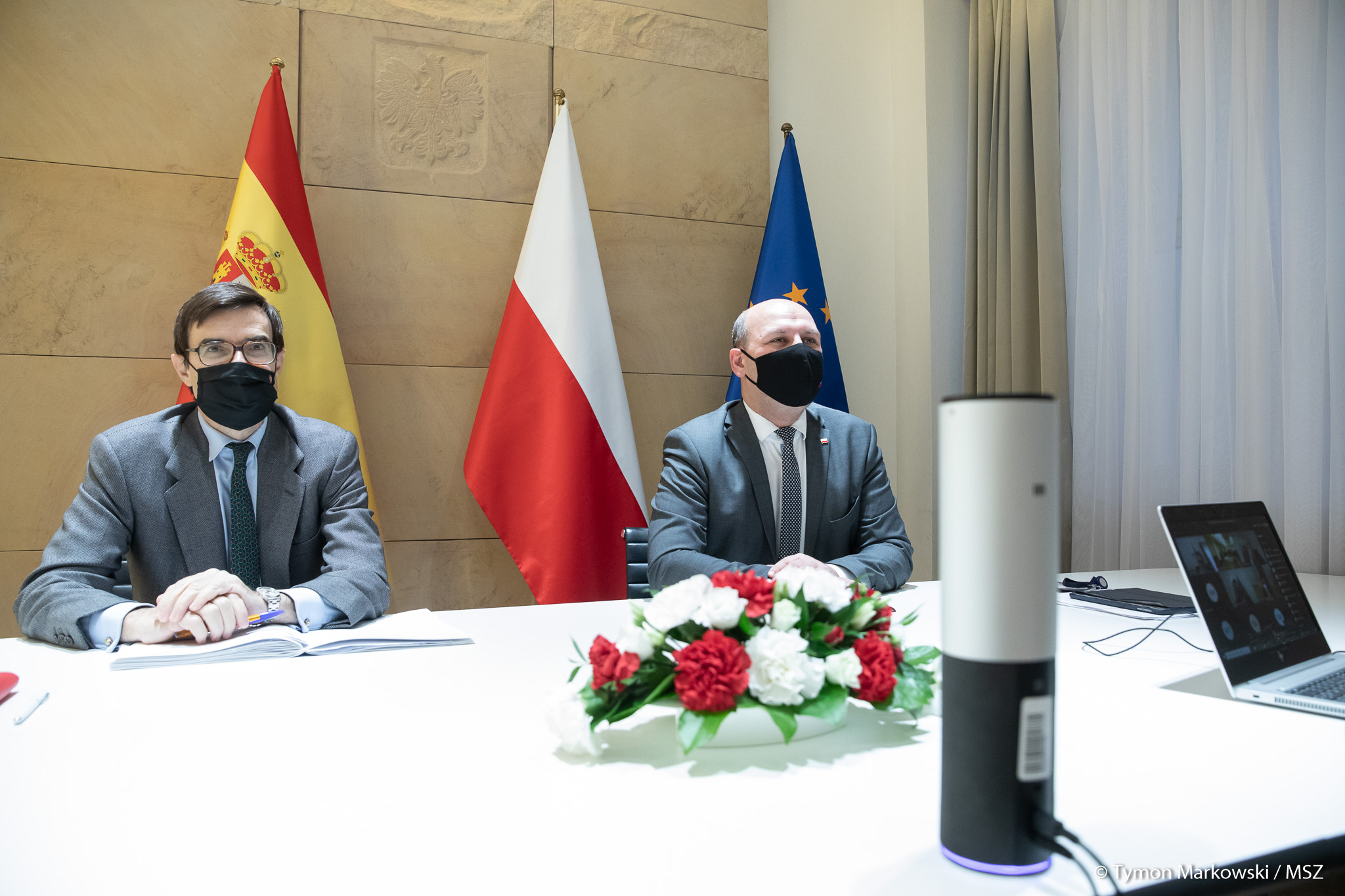 Polish and Spanish foreign ministers also held bilateral consultations, during which they discussed current relations and prospects for their development. “A close alliance between Poland and Spain is necessary to find good long-term solutions which will determine the future of the EU in areas such as the single market, balanced neighbourhood policy, and strong transatlantic relations,” said Deputy Minister Szynkowski vel Sęk. The deputy chief of Polish diplomacy stressed that Spain is one of Poland’s closest political partners within the European Union thanks to a regular political dialogue held at various levels. Both sides agreed that, despite the pandemic, the next round of intergovernmental consultations and a parliamentary forum planned for the first half of 2021 will help sustain close relations. Cooperation within the EU and mutual dialogue on current EU agenda are also important. Deputy ministers also talked about the Multiannual Financial Framework and the Recovery Fund.