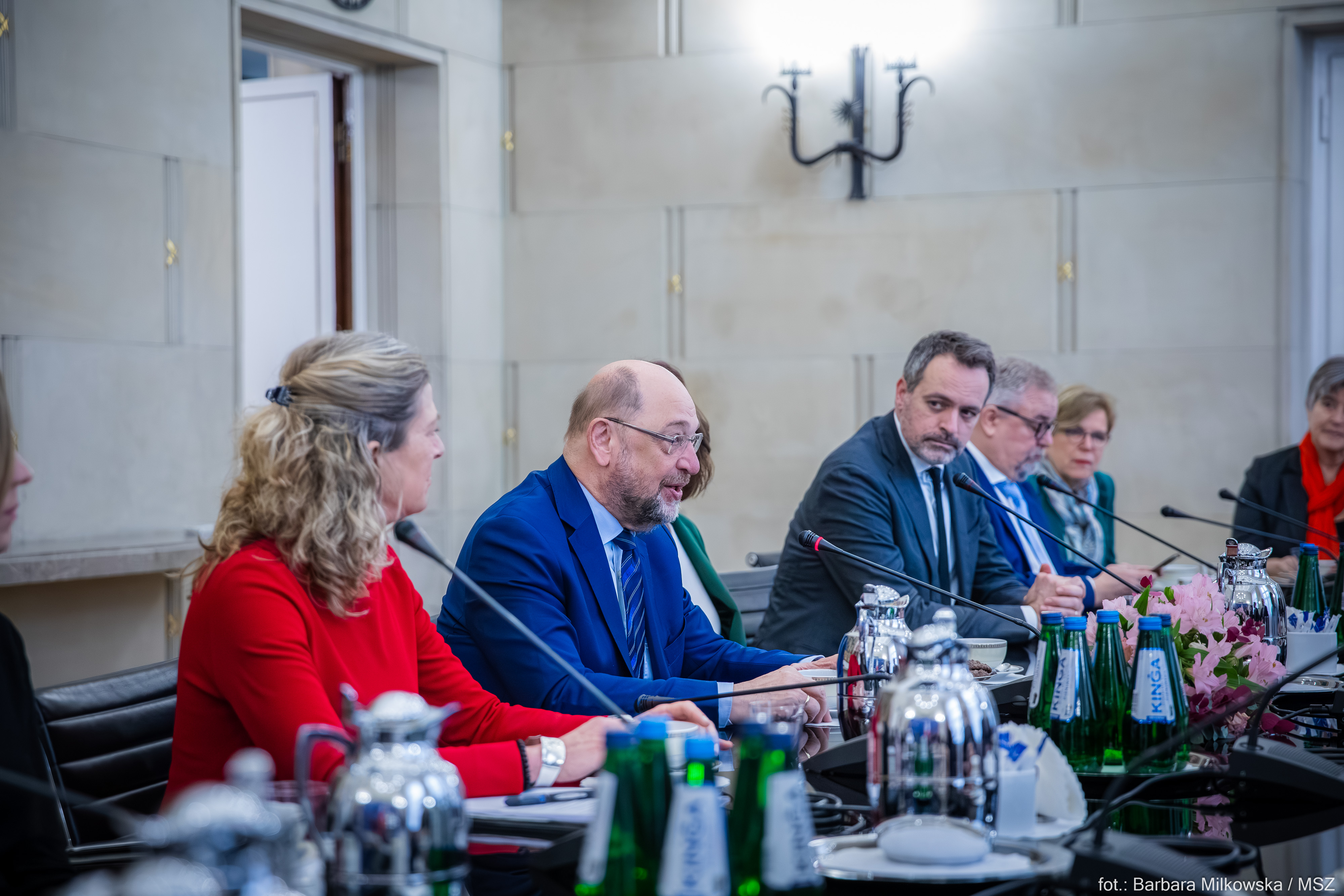 Undersecretary of State Marek Prawda spoke today with Martin Schulz, President of the Friedrich Ebert Foundation and former President of the European Parliament, and with a delegation of MEPs from the Social Democratic Party of Germany (SPD). The discussion focused on the state of Polish-German relations, possibilities of supporting Ukraine, and current EU agenda.