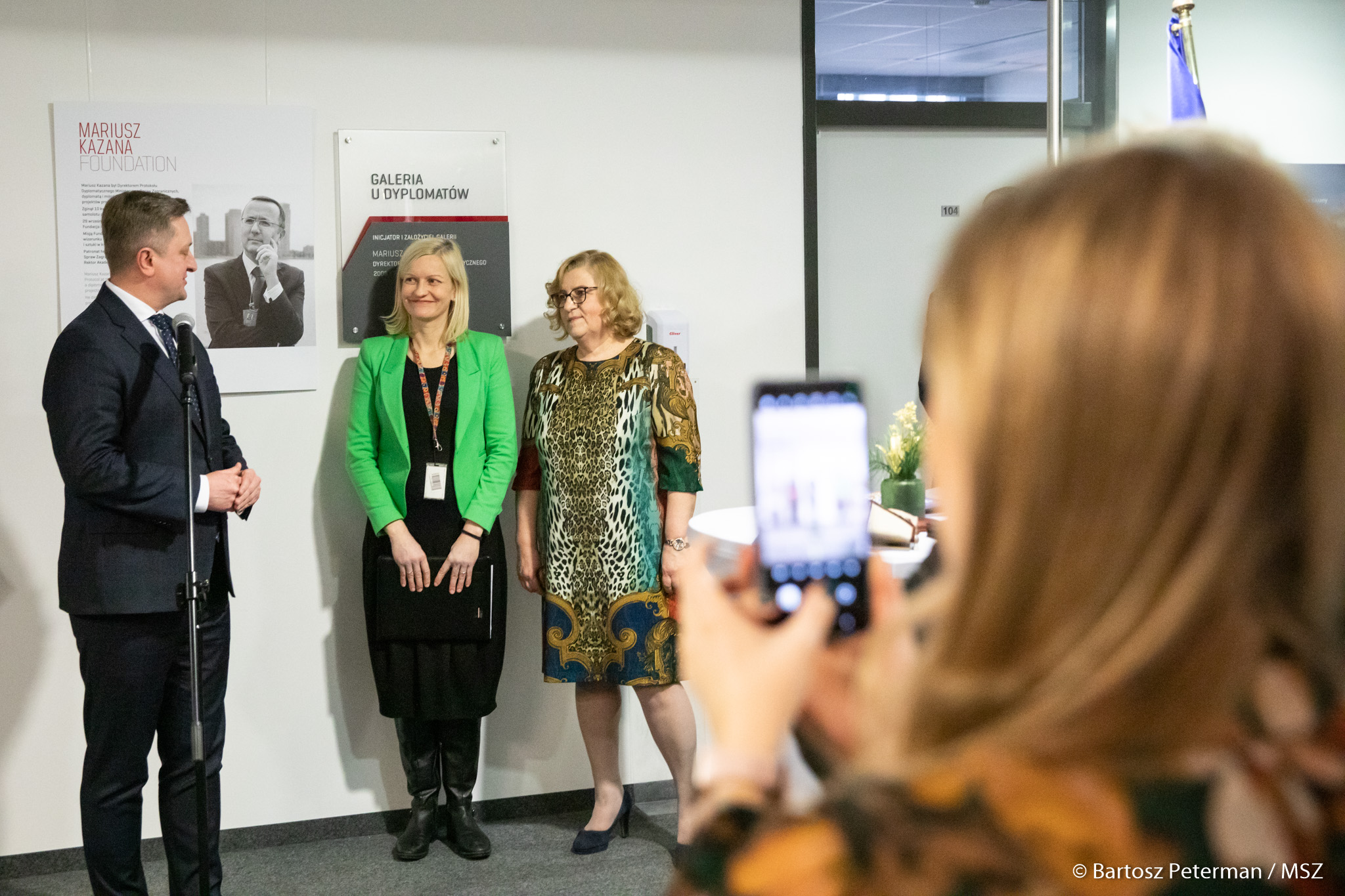 "With Poland's support, we can present our talents to the world, proving Ukraine's imperishability," His Excellency Vasyl Zvarych, Ambassador of Ukraine to Poland, said at the opening of the exhibition preview of works by winners of the Indeks im. Mariusza Kazany art competition at the Diplomats' Gallery on the premises of the MFA's Diplomatic Protocol on 13 December 2022.