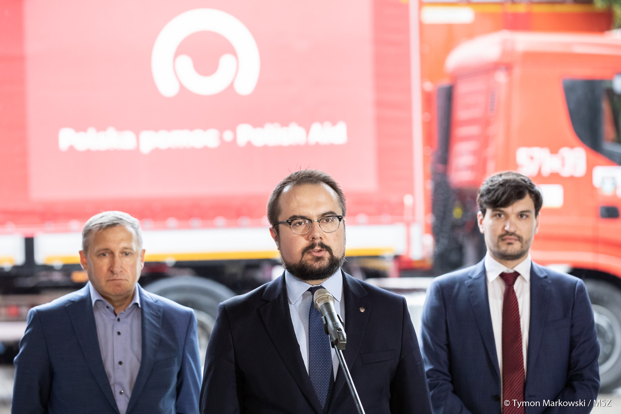 “On this day, we again meet our international and human obligations sharing what we can with the Republic of Moldova and Ukraine. The aid is a token of our solidarity and the readiness to cooperate with the Republic of Moldova and Ukraine, our important partners within the Eastern Partnership,” said Deputy Minister Paweł Jabłoński during the departure ceremony of further two humanitarian convoys carrying equipment and supplies to fight the coronavirus pandemic in Ukraine and Moldova.