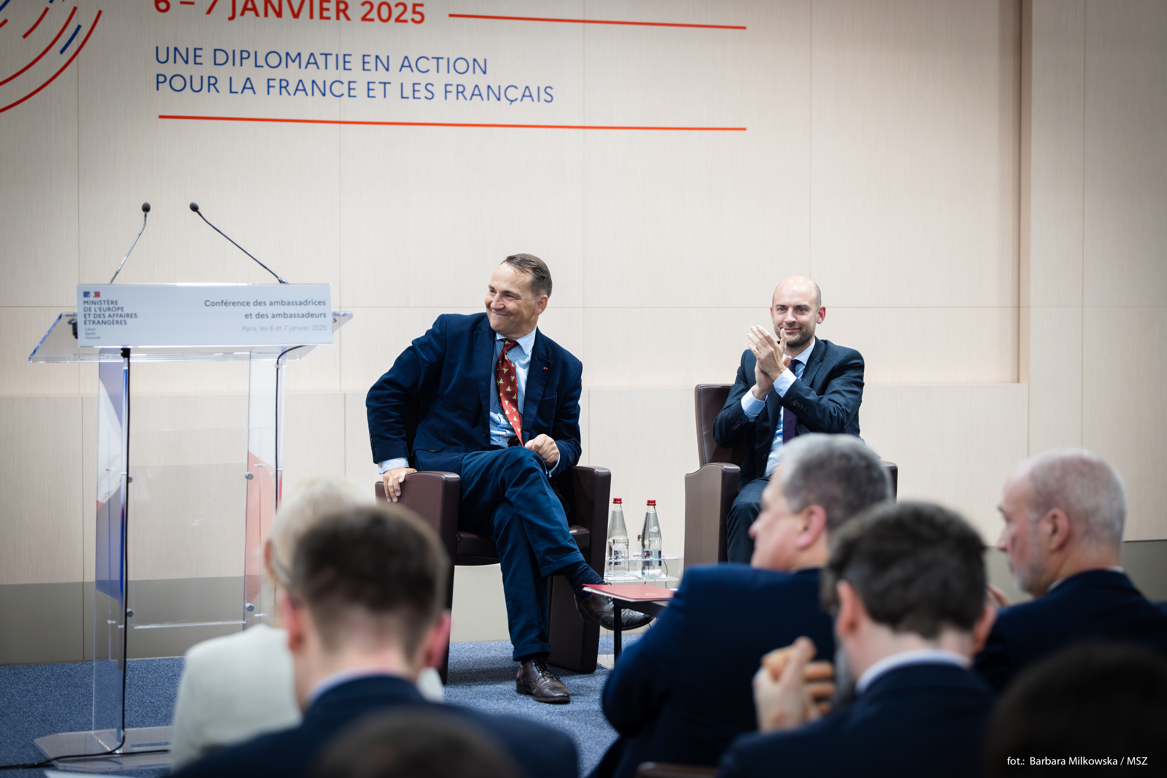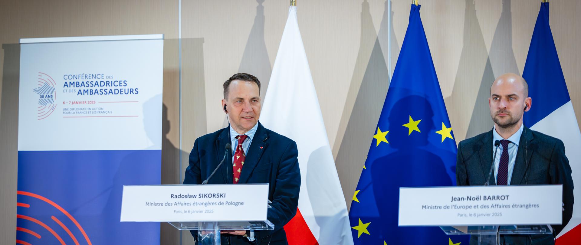 Today, Minister Radosław Sikorski took part in the Ambassadors’ Conference of the French Republic, held in Paris. As part of the Conference, he met with Jean-Noël Barrot, Minister of Europe and Foreign Affairs of the French Republic.