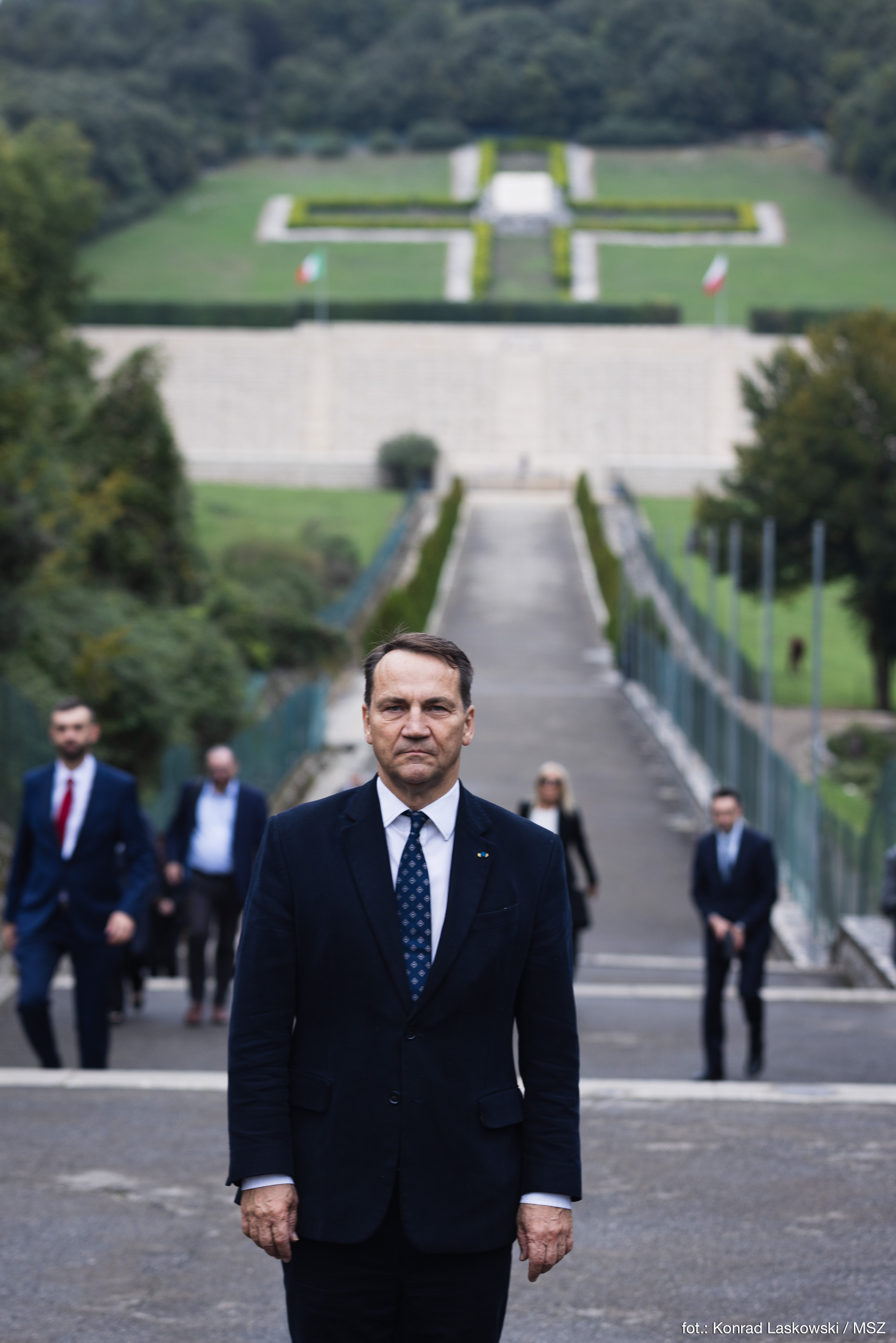 Paying respects to the Polish soldiers fallen at the Battle of Monte Cassino and buried at the Polish War Cemetery there marked the end of Minister Sikorski’s Italian visit. This year marks the 80th anniversary of the Battle, in which Polish casualties amounted to 923 killed, 2,931 wounded, and 345 reported as missing. Minister Sikorski laid a wreath at the Virtuti Militari Cross at the Cemetery, a resting place for 1,048 Polish soldiers—apart from those killed during the Battle of Monte Cassino, also soldiers of the 2nd Polish Corps killed before the assault and those who laid down their lives in further fighting in the area, mainly in the battle of Piedimonte.
