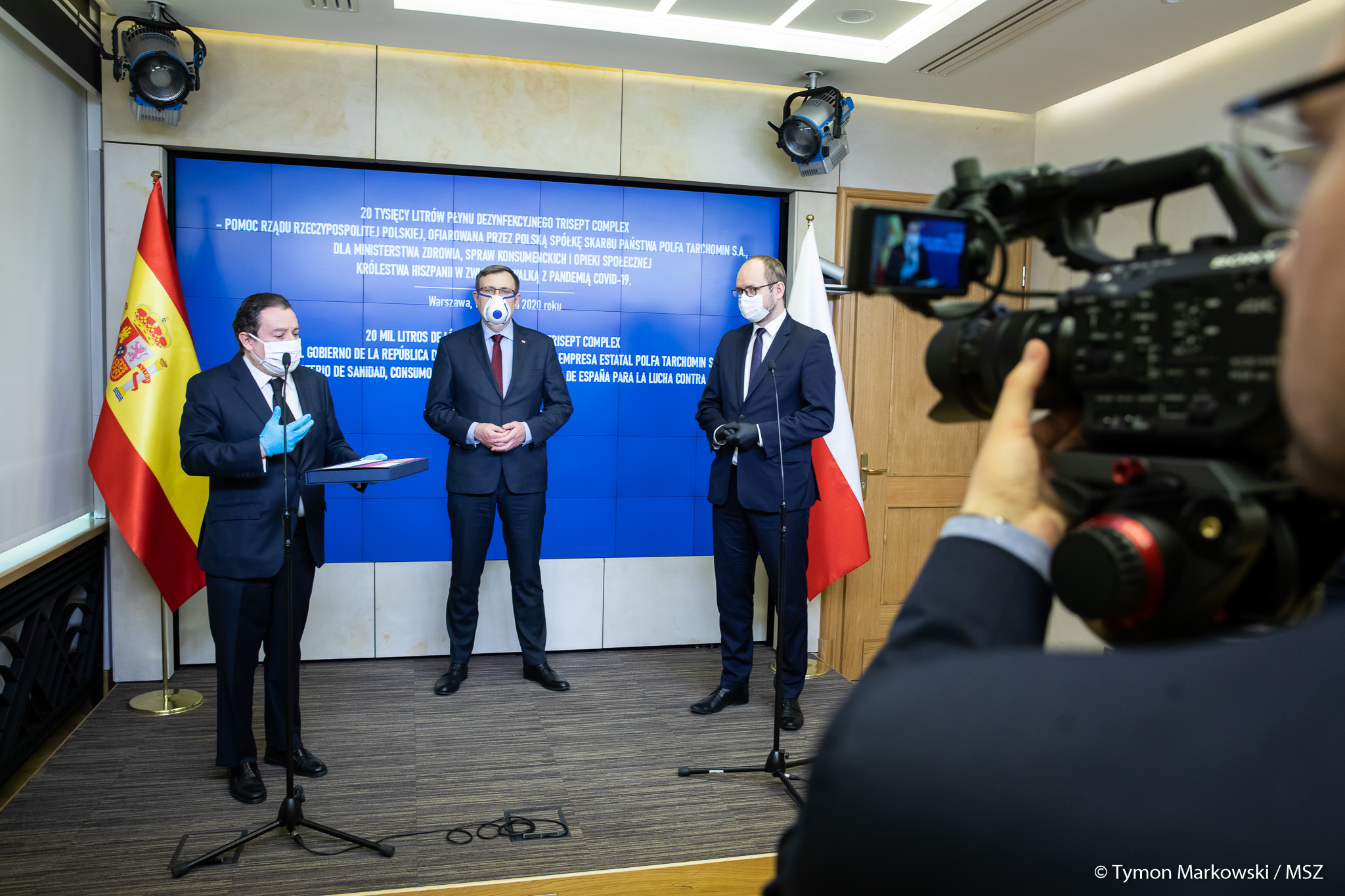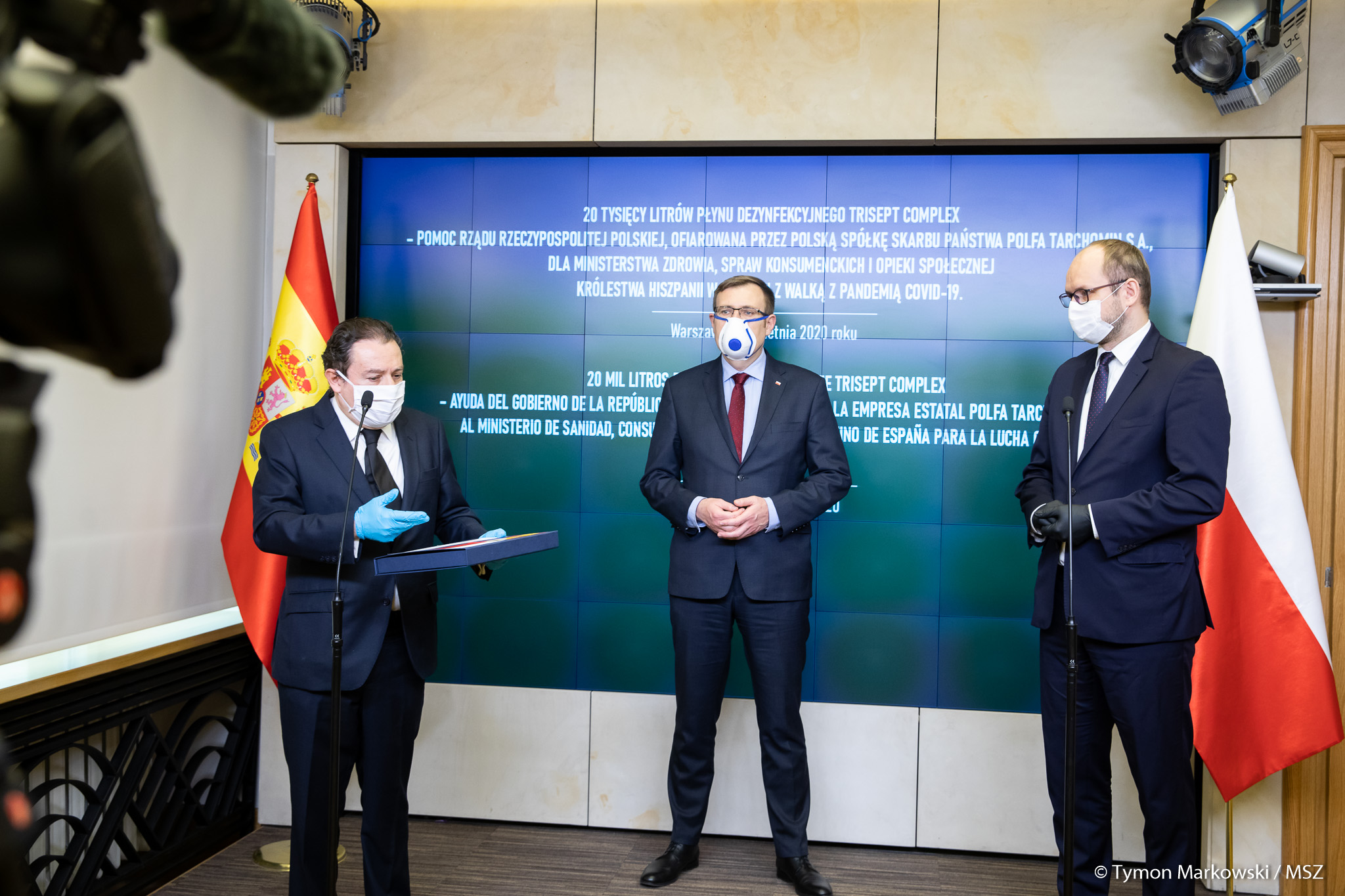 In this emergency situation, as a gesture of friendship and solidarity, the Polish government has offered Spain’s Ministry of Health, Consumer Affairs and Social Welfare assistance provided by the state-owned Polfa Tarchomin S.A. company. On Thursday, 16 April 2020, a load of 20,000 litres of Trisept Complex disinfectant will be dispatched to Spain by road.